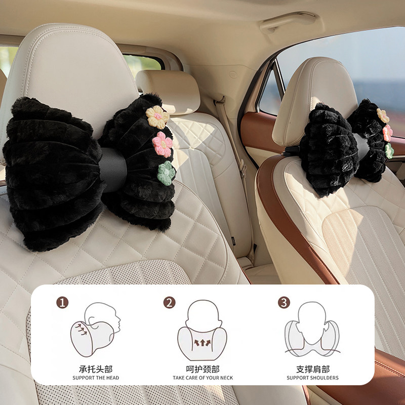 汽车头枕护颈枕季毛绒女生可爱2025款冬座椅车载枕头车用腰靠套装