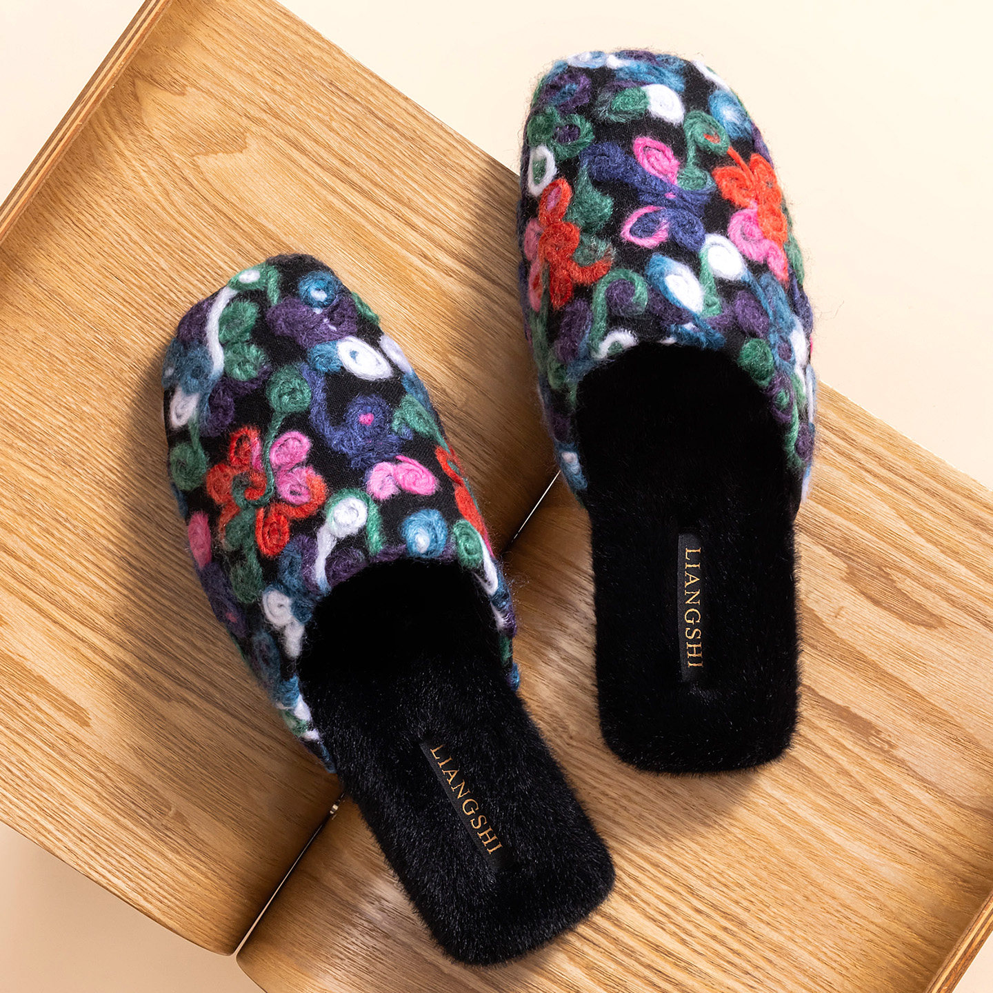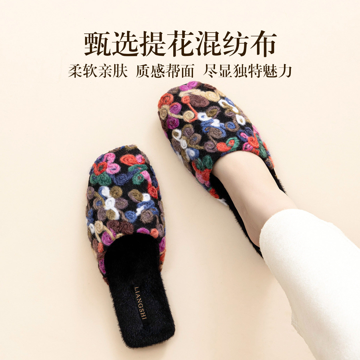复古精致工艺手工盘花棉拖鞋