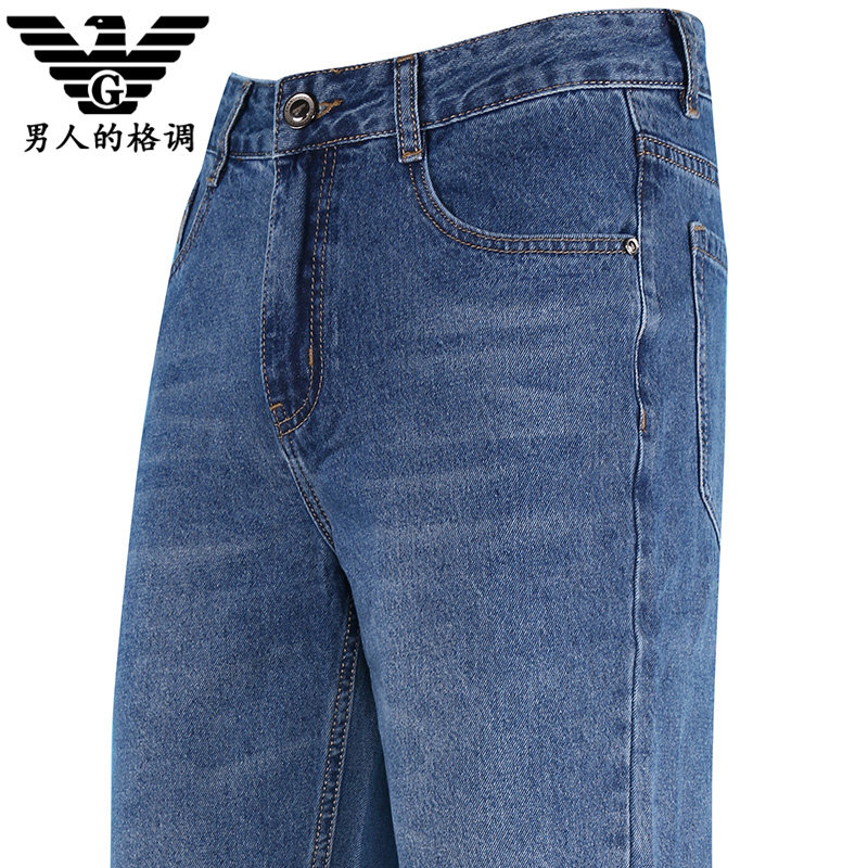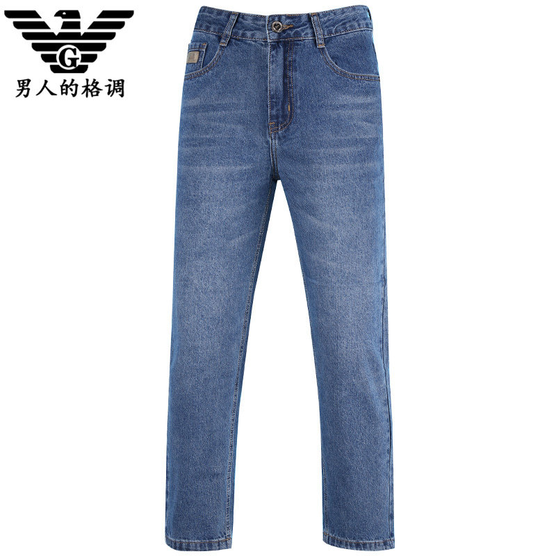 V格纯棉九分牛仔裤男秋冬厚款大码宽松直筒中高腰水洗休闲9分裤潮
