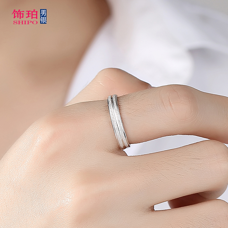925纯银戒指男士单身个性闭口磨砂食指百搭指环女小众高级感刻字