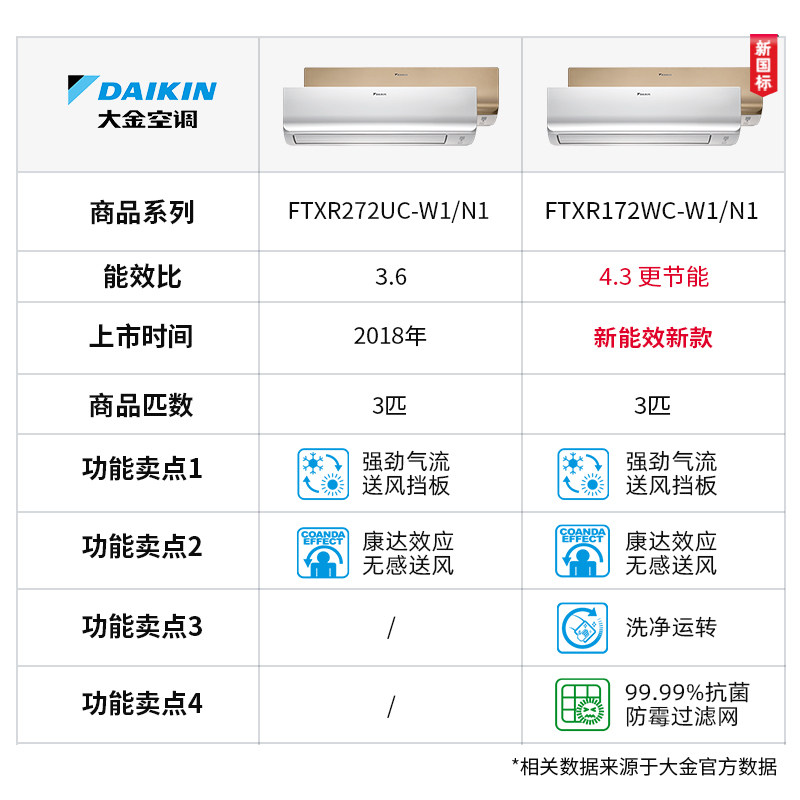 *Daikin/大金 FTXR172WC-W1 一级能效变频冷暖3匹壁挂机家用空调