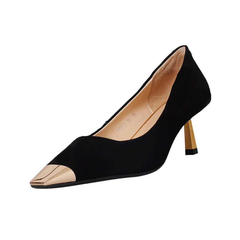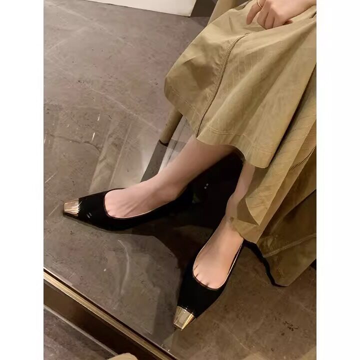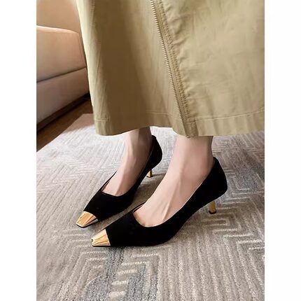 真皮法式气质名媛单根黑丝高跟鞋配裙子黑色方头特细跟单鞋女春秋