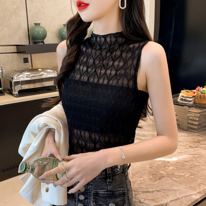 白色吊带背心女秋冬西装内搭半高领打底衫短款雪纺衫紧身上衣外穿
