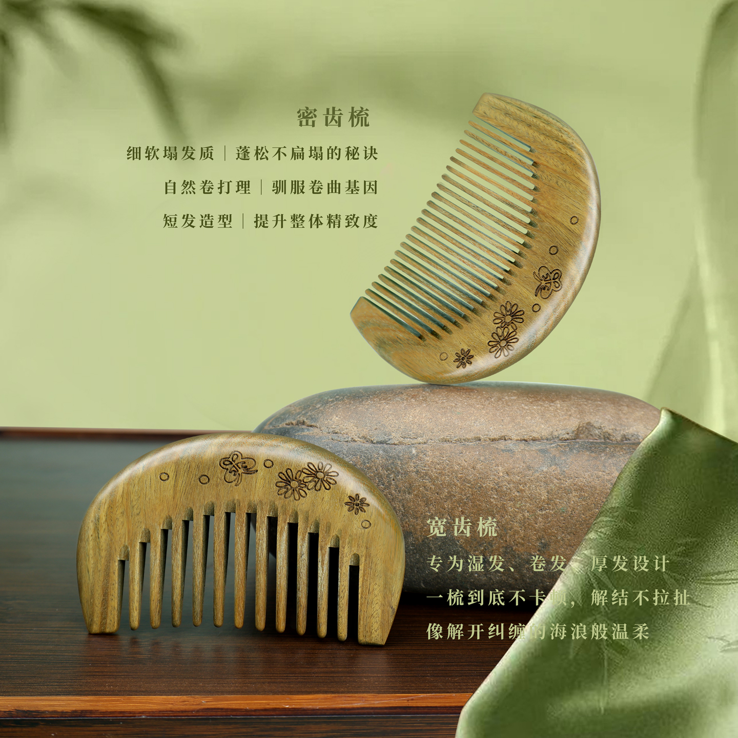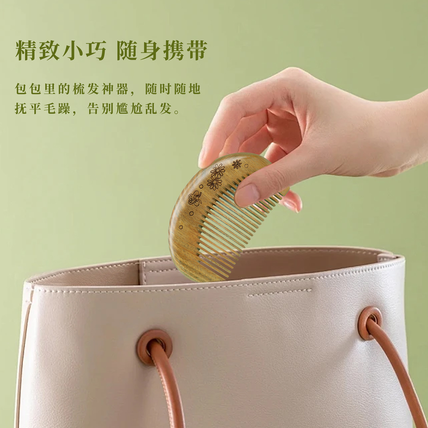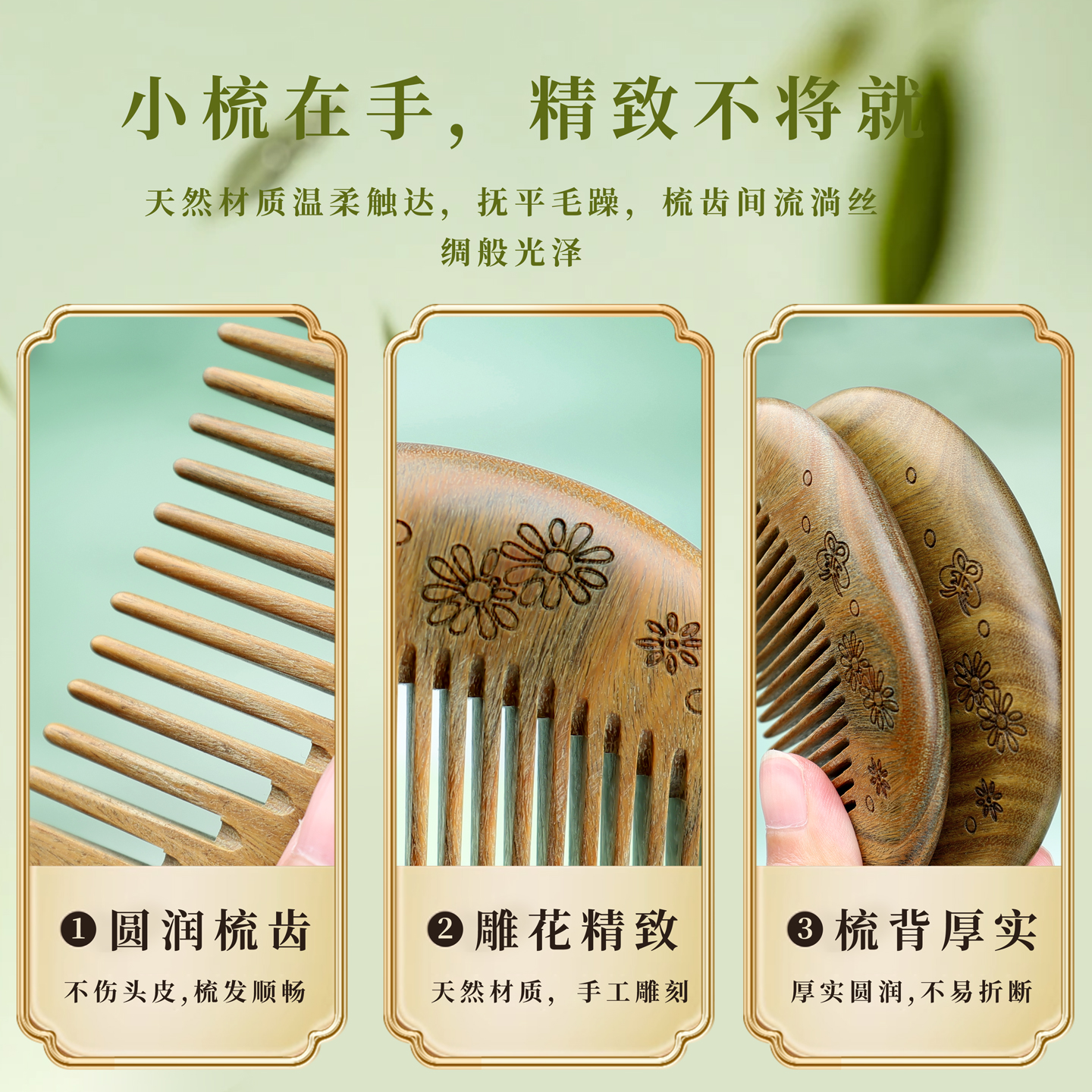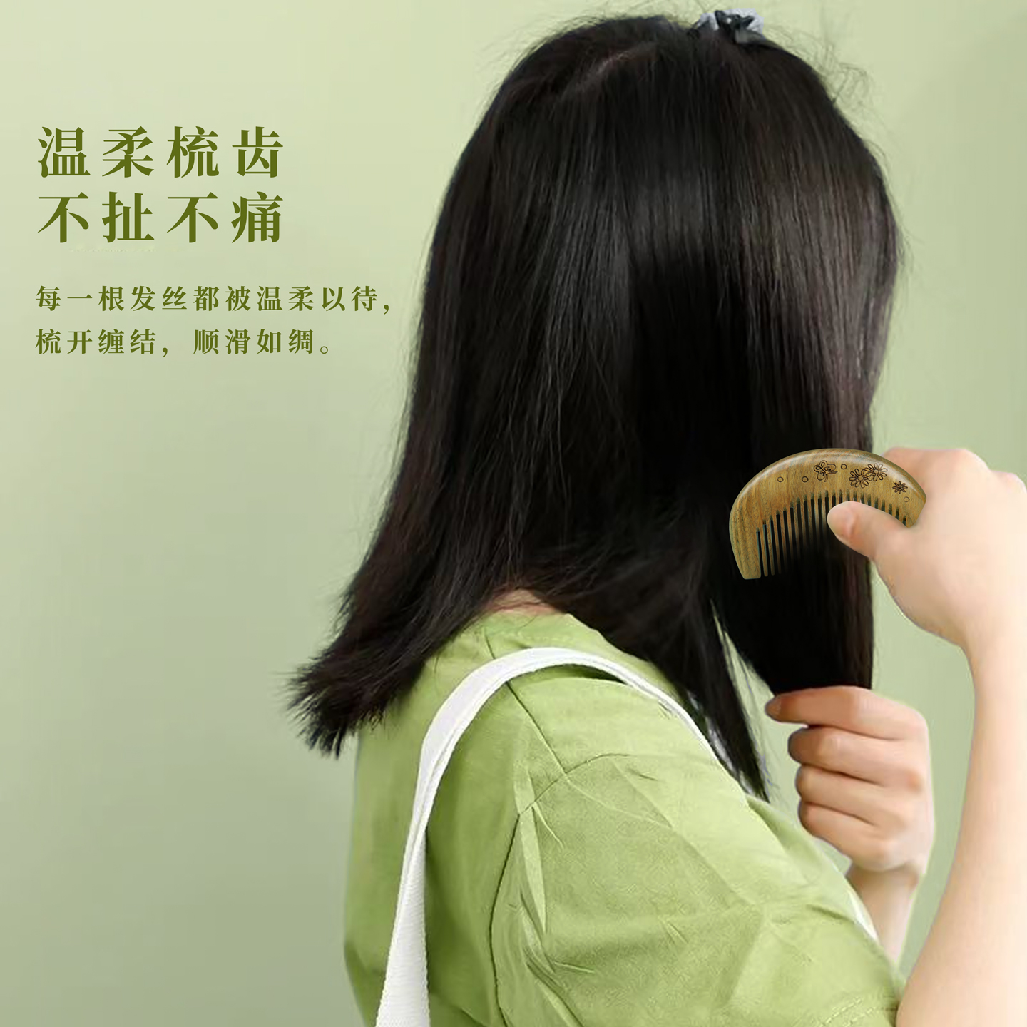 正品绿檀木梳子女小号可爱天然檀香整木便携免费刻字送女友礼物
