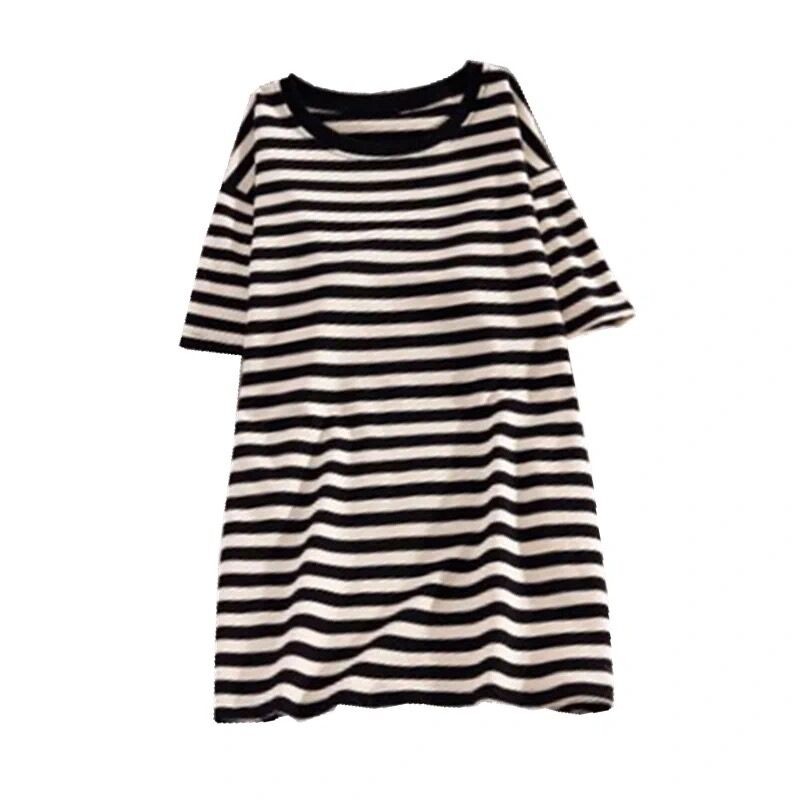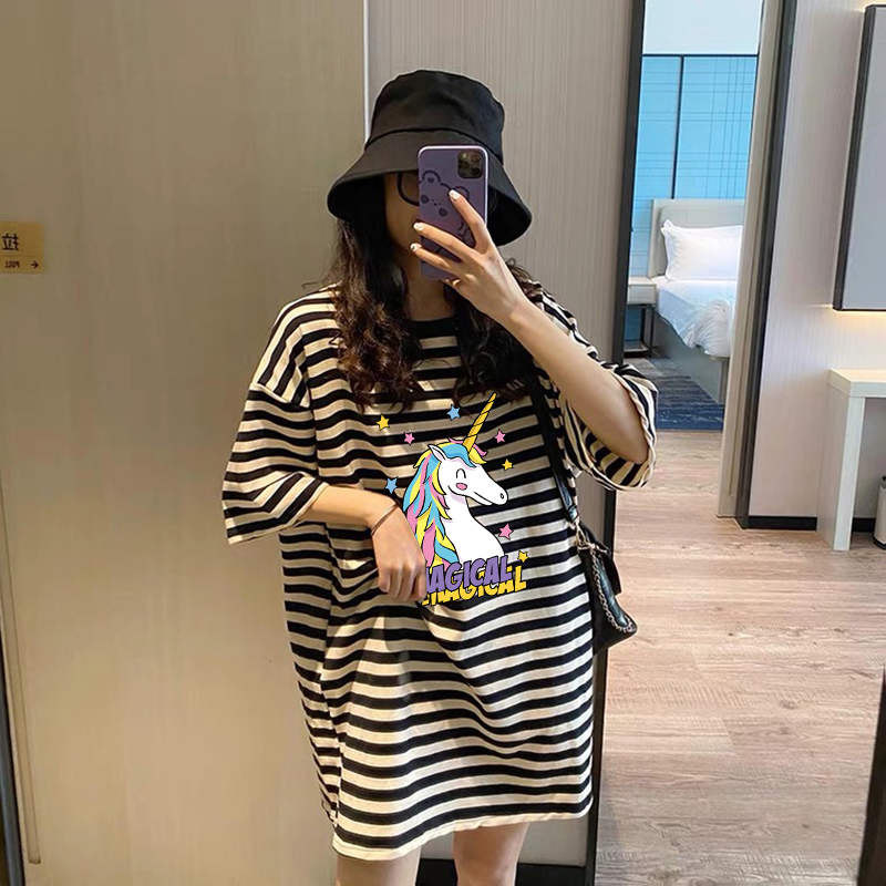 孕妇装夏季上衣条纹纯棉中长款遮屁股时尚彩虹印花小个子短袖t恤