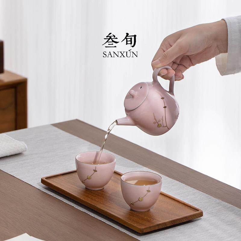 叁旬汝窑茶壶茶具小套装家用泡茶功夫茶杯礼盒装2024新款高档送礼