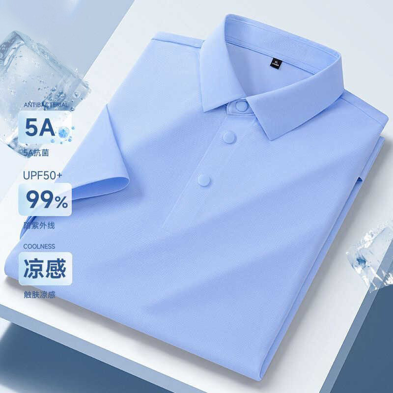 【5A级抗菌+摁扣】夏季冰丝polo衫男士短袖商务免烫翻领t恤衫上衣