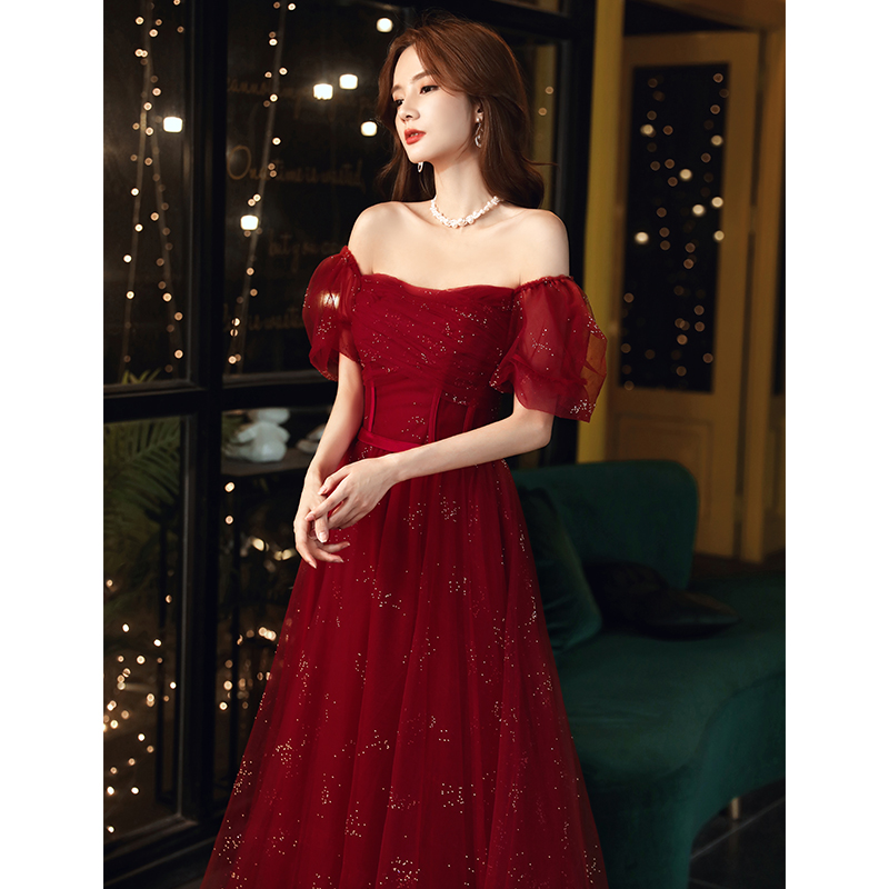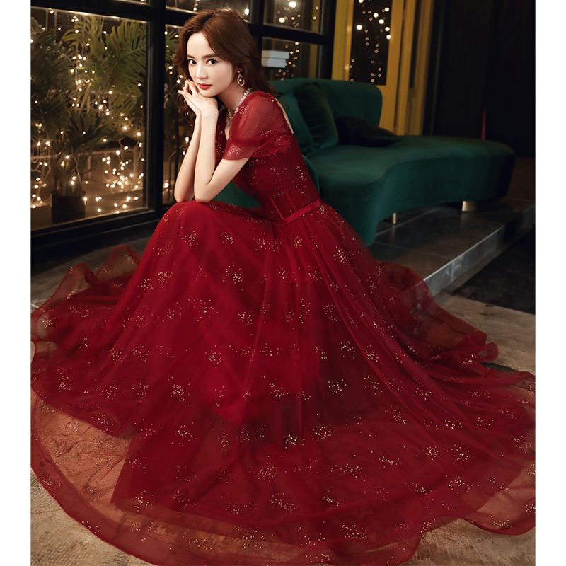 速发敬酒服新娘2021新款红色仙气答谢宴会气质结婚晚礼服裙冬季纱