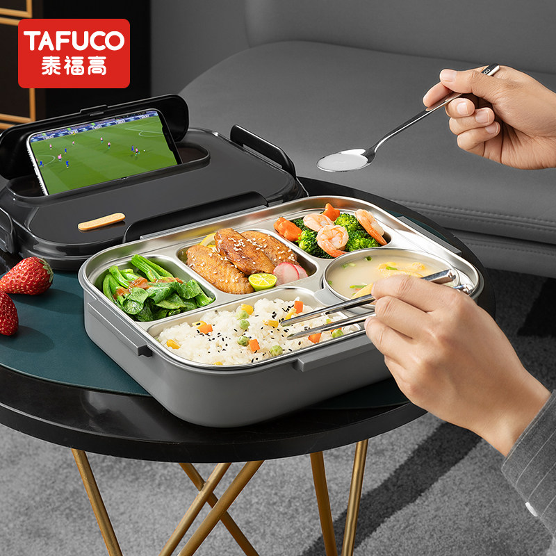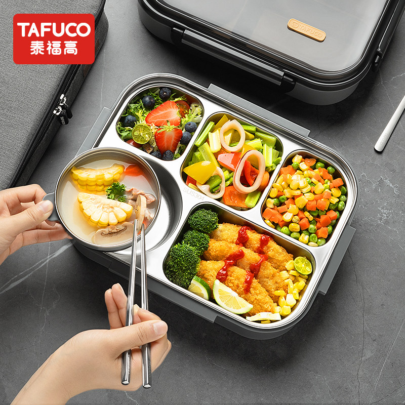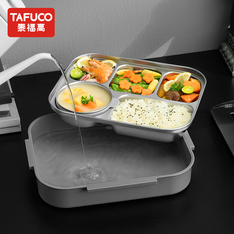 日本泰福高5格便当盒316不锈钢可加热餐盘上班族防漏汤饭盒大容量