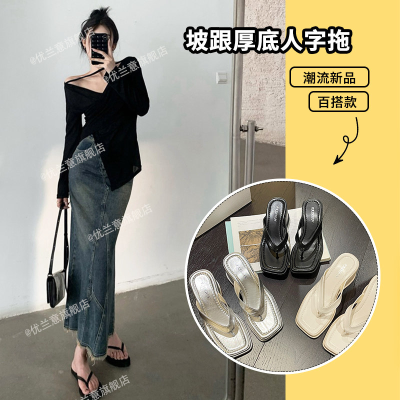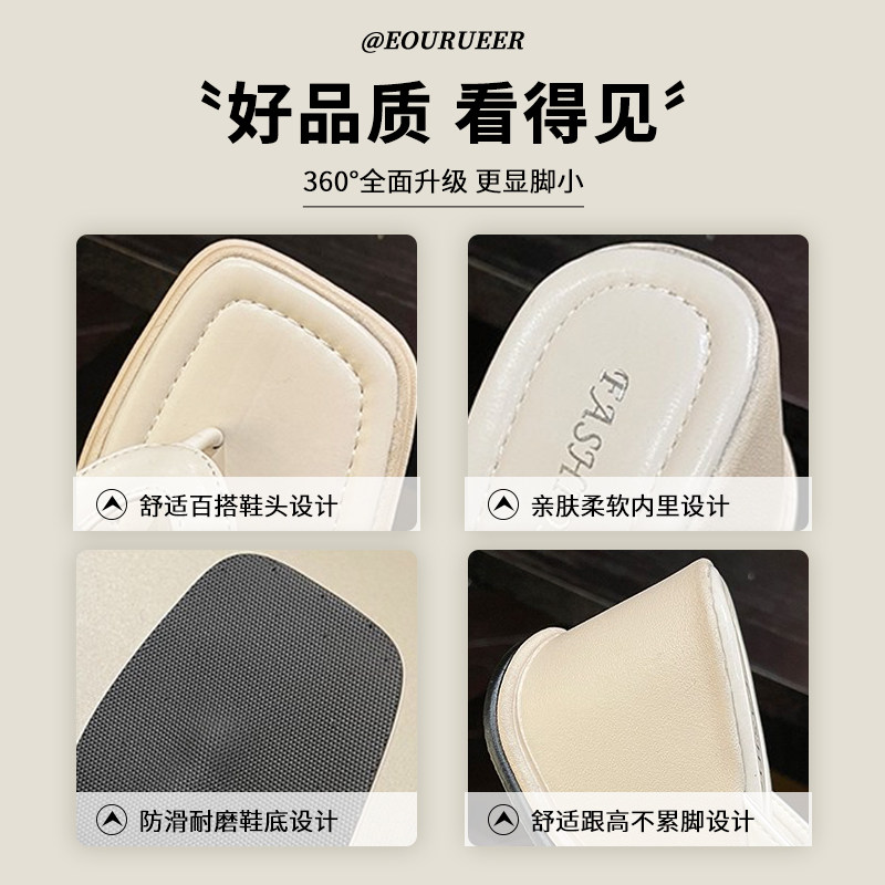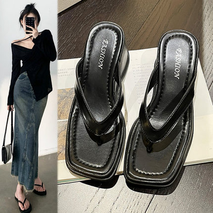 法式方头凉拖夹脚厚底人字拖鞋仙女夏季外穿2024新款夹趾坡跟凉鞋
