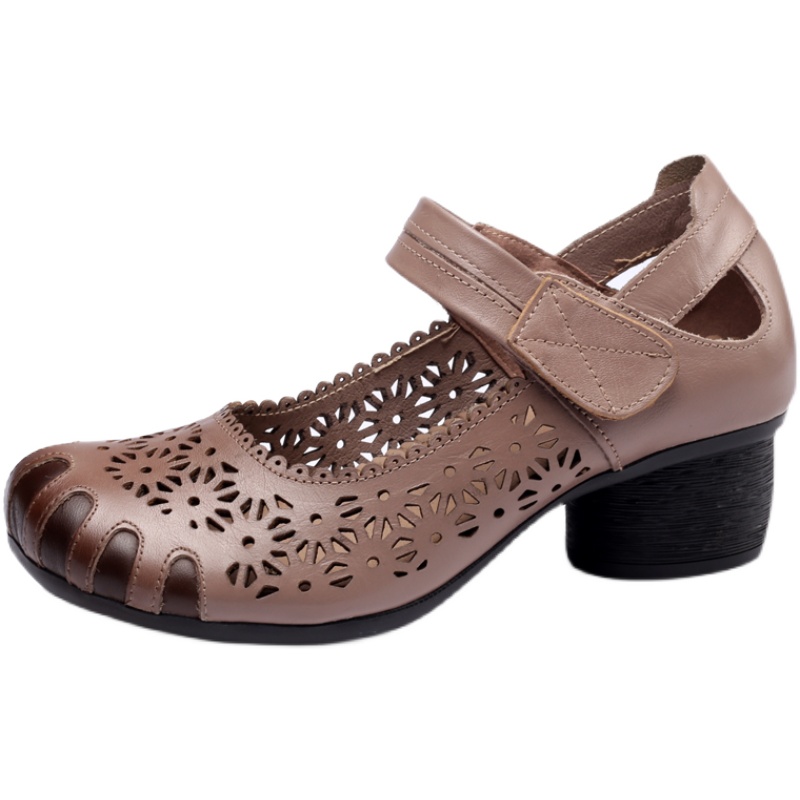 春款凉鞋包头软牛皮妈妈鞋舒适手工复古民族风女鞋镂空透气单皮鞋