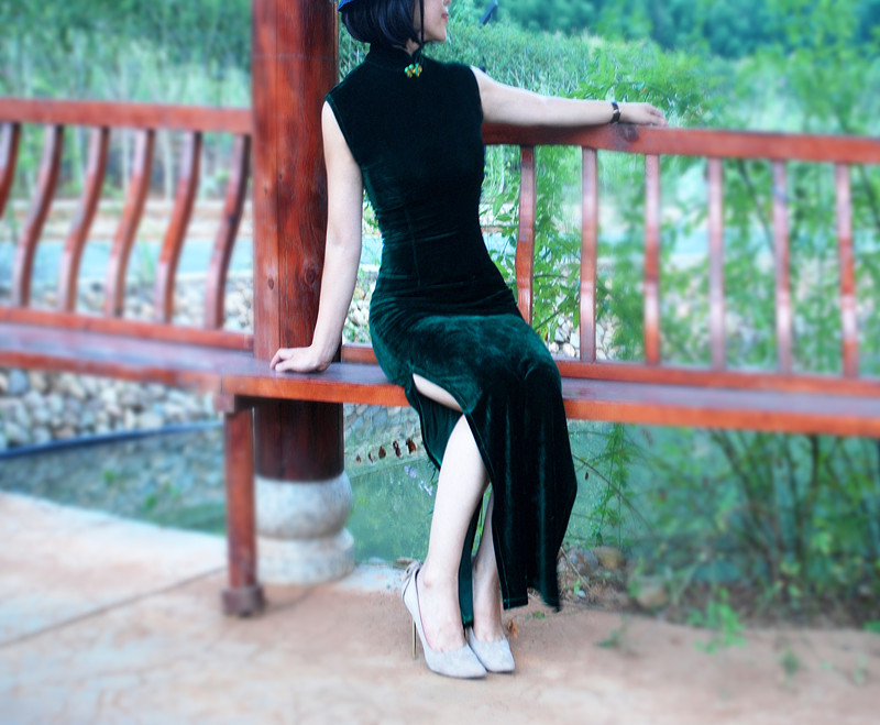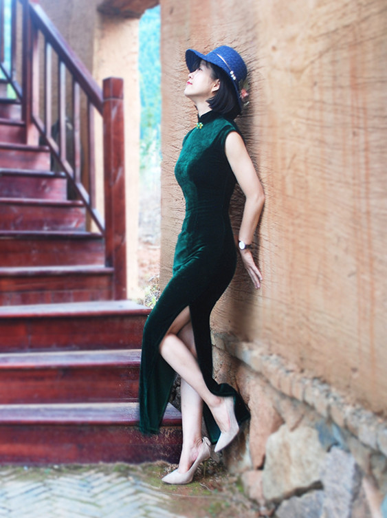 2021春秋旗袍长款金丝绒旗袍大弹力演出复古静雅文艺长旗袍大码