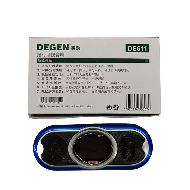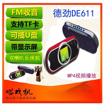 德劲DE611插卡FM收音机U盘定时开关机可视音响视频播放机语音报时