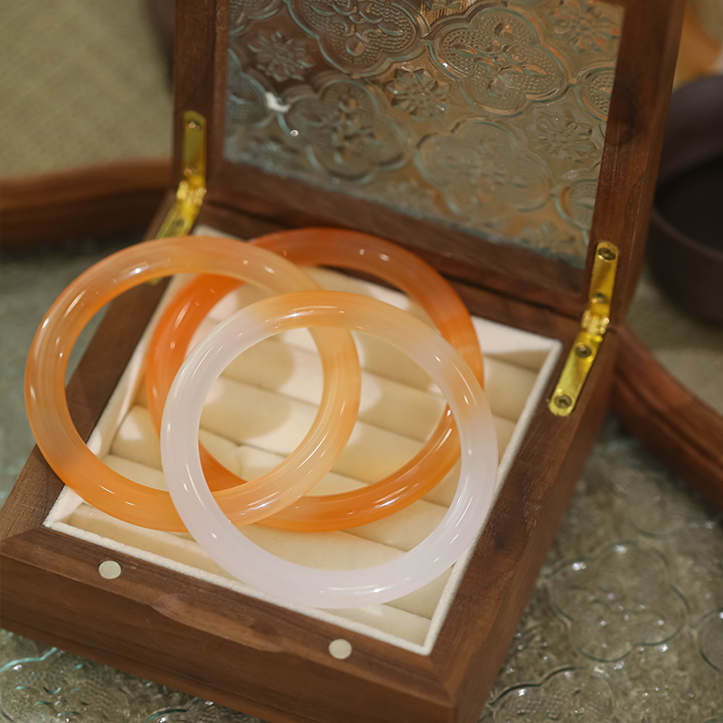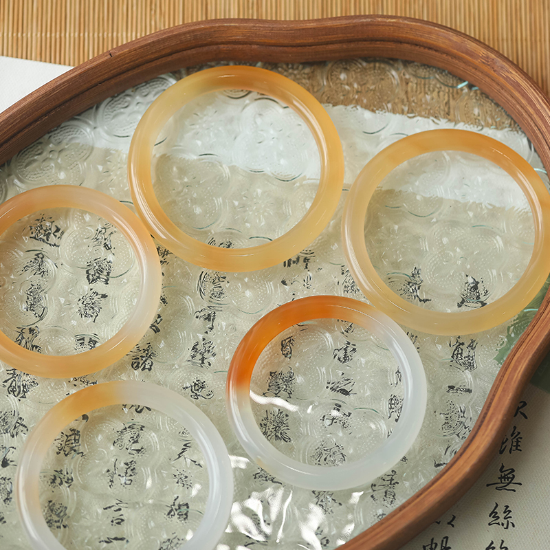 砂糖橘美人条|天然玛瑙玉髓手镯少女款年轻冰种橘色细圆渐变飘花