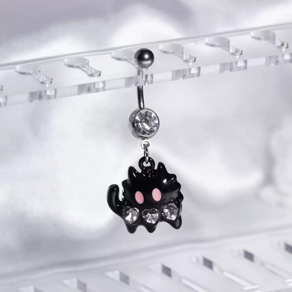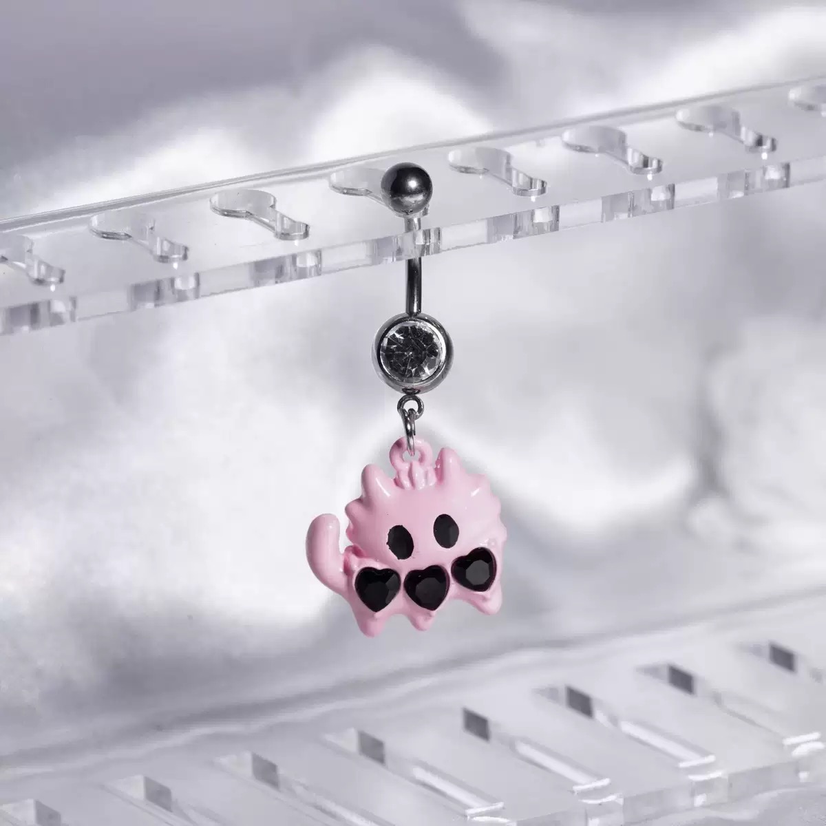 墨刺研究室 猫咪肚脐钉蝴蝶结爱心吊坠钛钢甜辣妹脐钉ins穿刺饰品