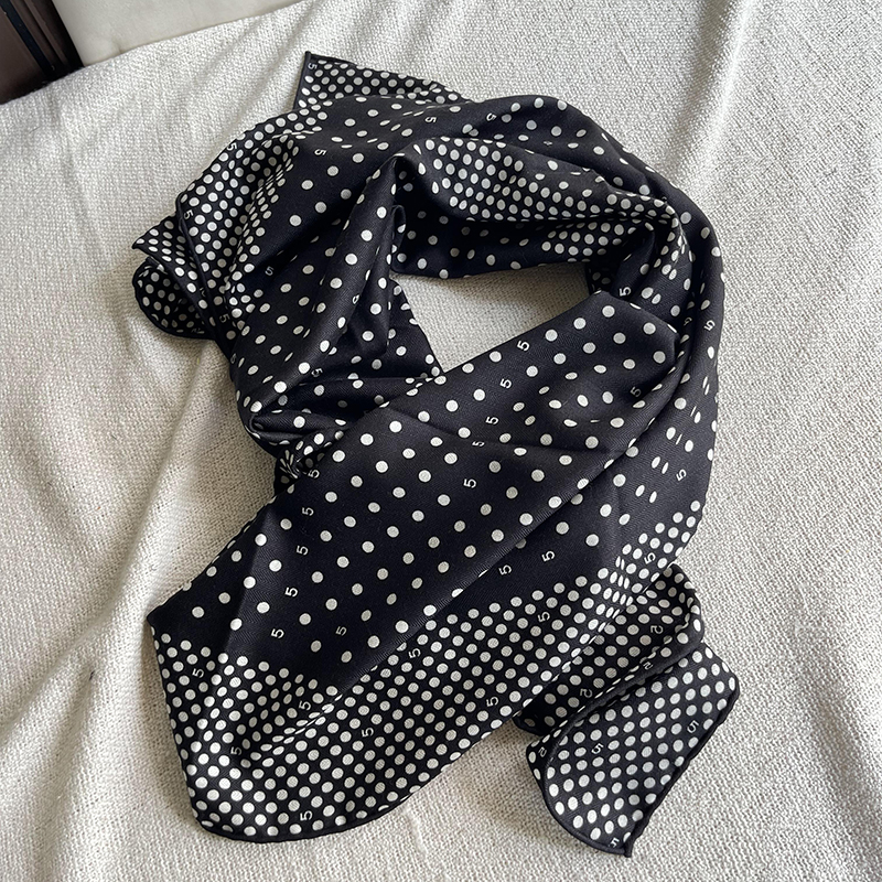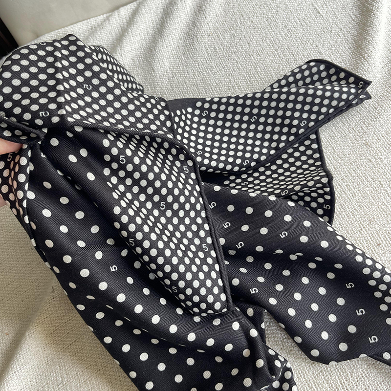 高品质小香风黑色波点真丝羊毛大方巾秋冬时尚复古披肩保暖围巾潮