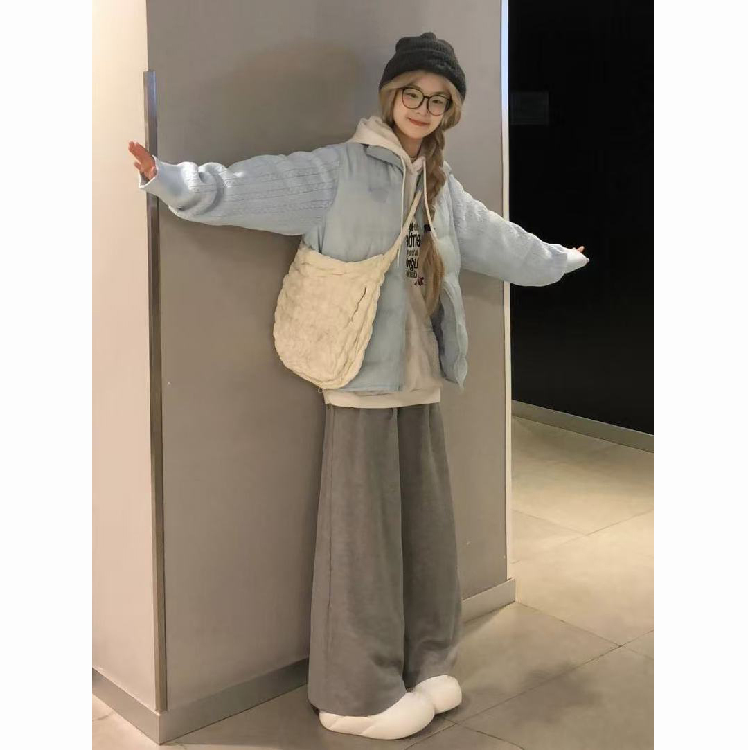 冬季新款慵懒风麻花针织拼接立领设计感棉服女百搭立领面包服外套