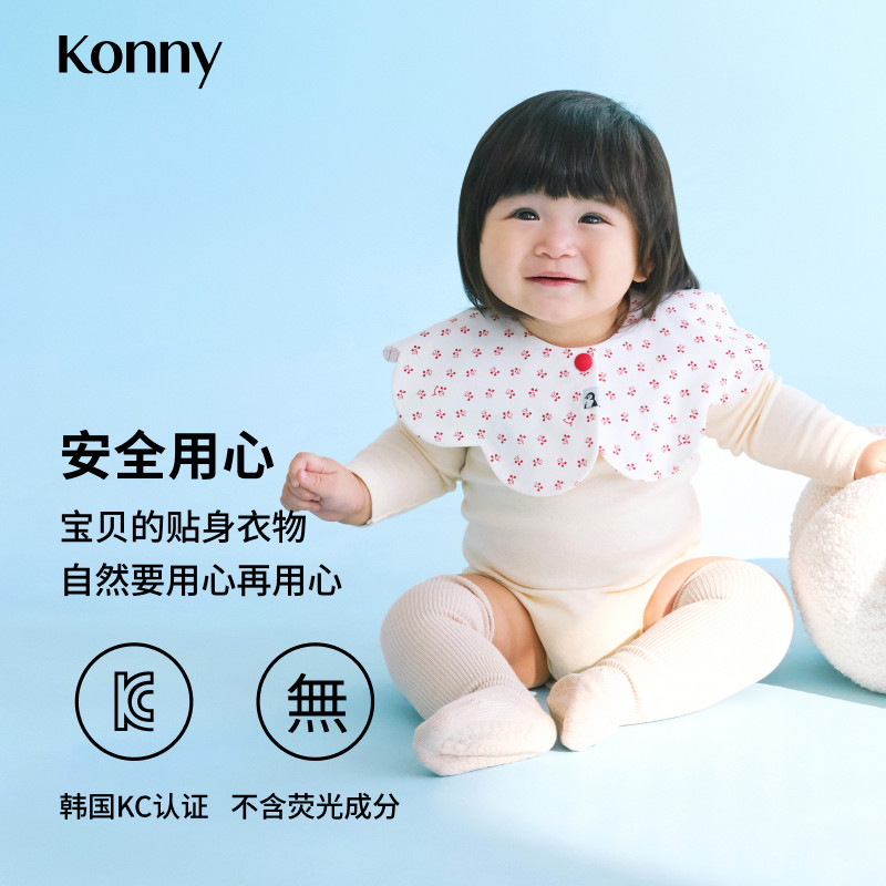 Konny双面双色口水巾新生儿辅食围嘴婴儿花瓣围脖口水兜假领子