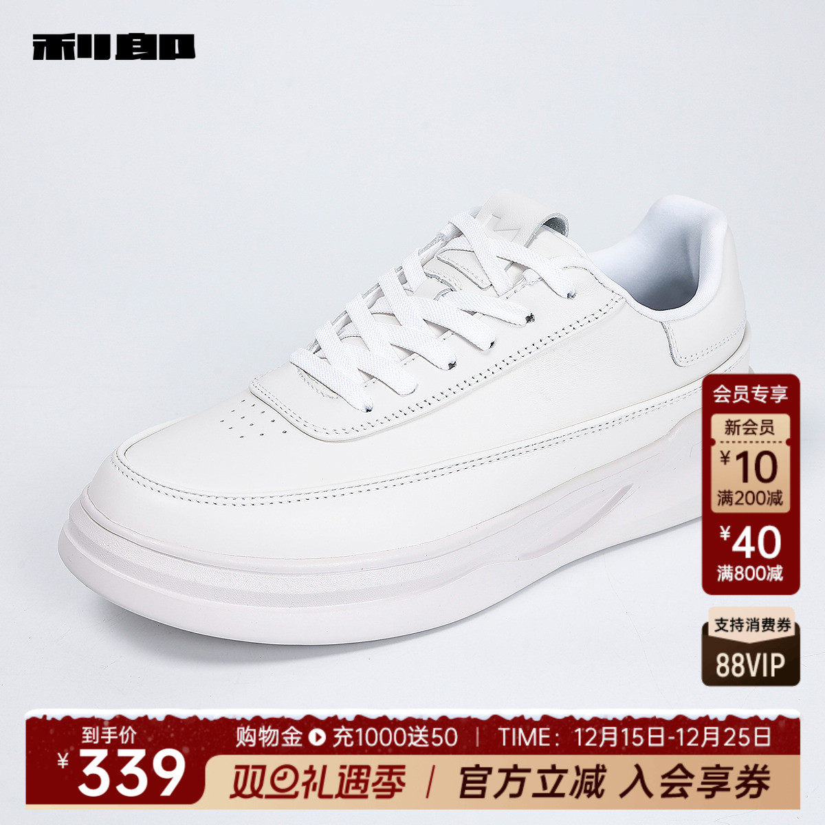 利郎奥莱牛皮革板鞋厚底小白鞋男