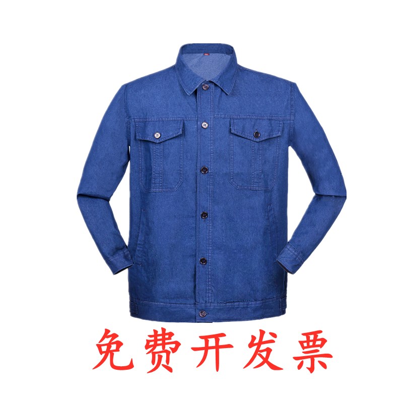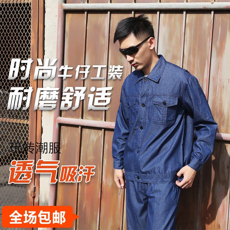 夏季牛仔工作服套装男薄款长袖工装汽修车间电焊工耐磨透气劳保服