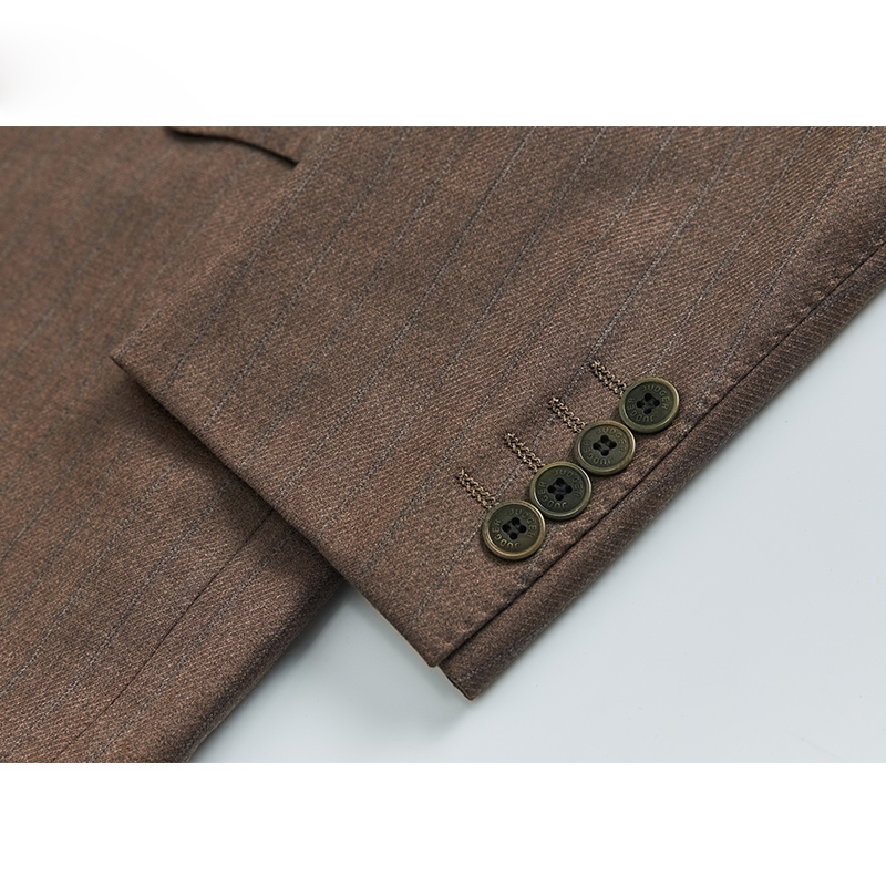 【吉家】男士商务休闲条纹毛料西装外套宽松纯羊毛单西服便
