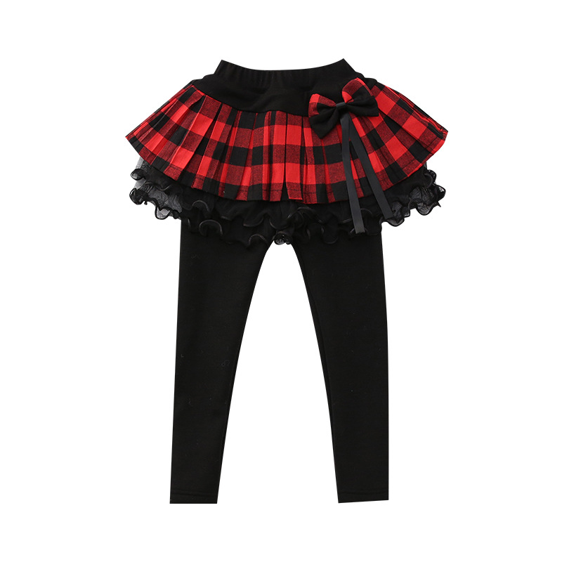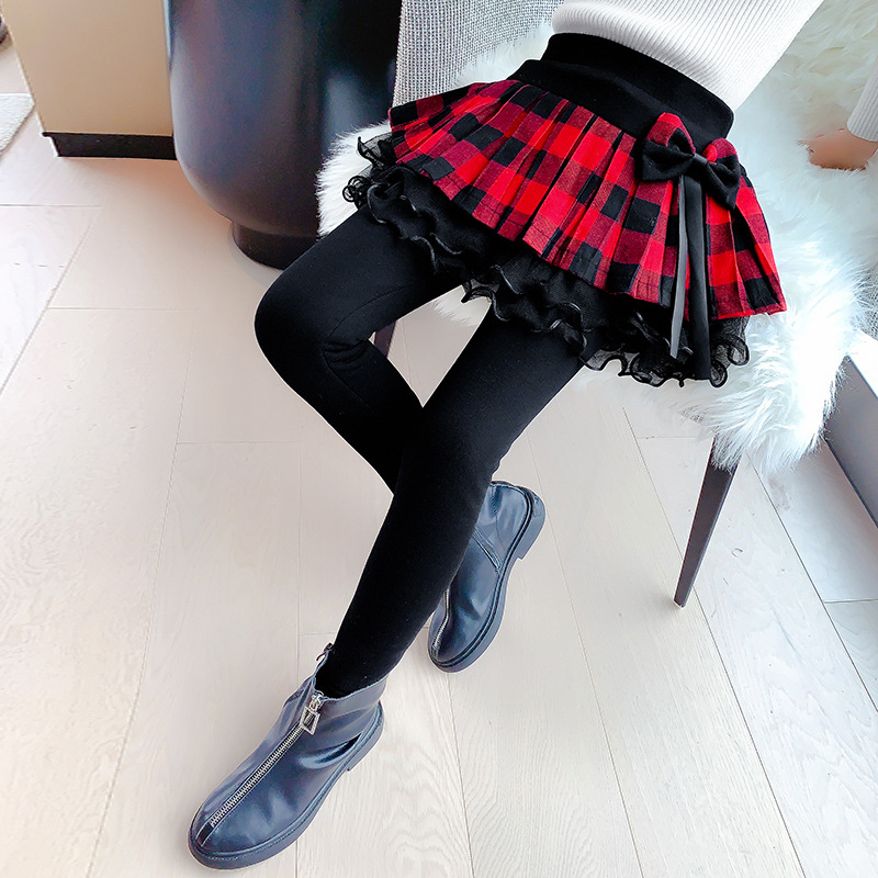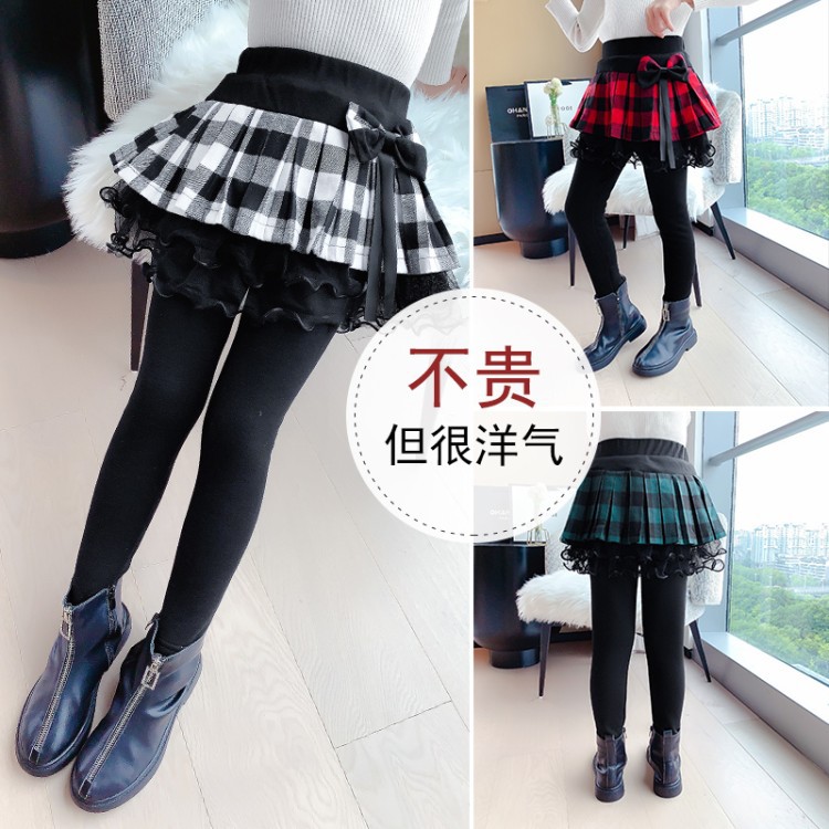 女童裙裤秋冬2025新款女孩外穿假两件裤子儿童加绒加厚格子打底裤