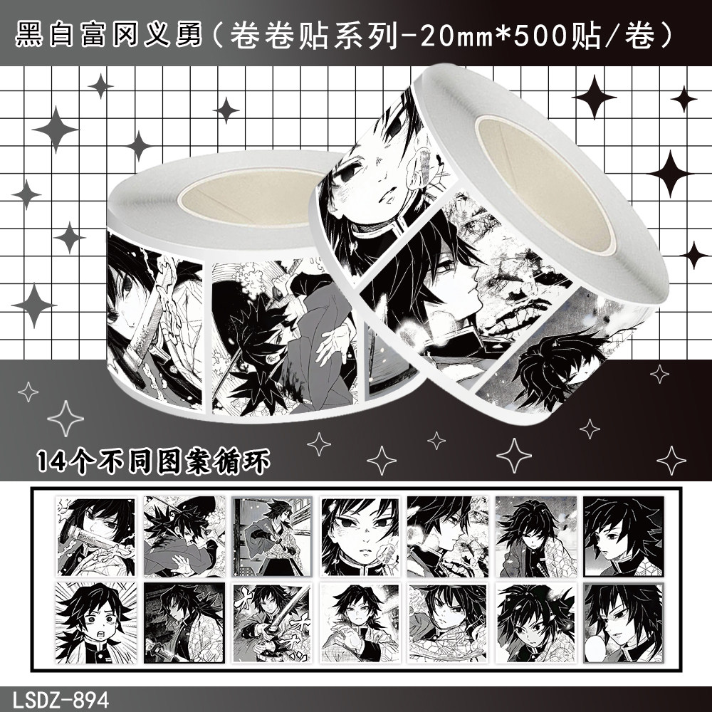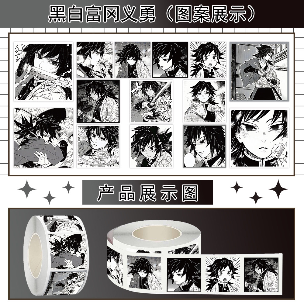 1000贴黑白富冈义勇卷卷贴鬼灭之刃水柱动漫周边装饰水杯防水贴画