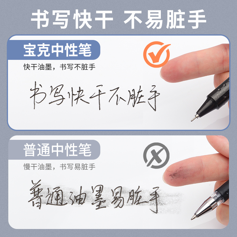 宝克中性笔黑色闪钻0.5mm笔头水性笔36支学生文具用品碳素笔芯签字备考试专用速干书写作业全针管式PC1808女