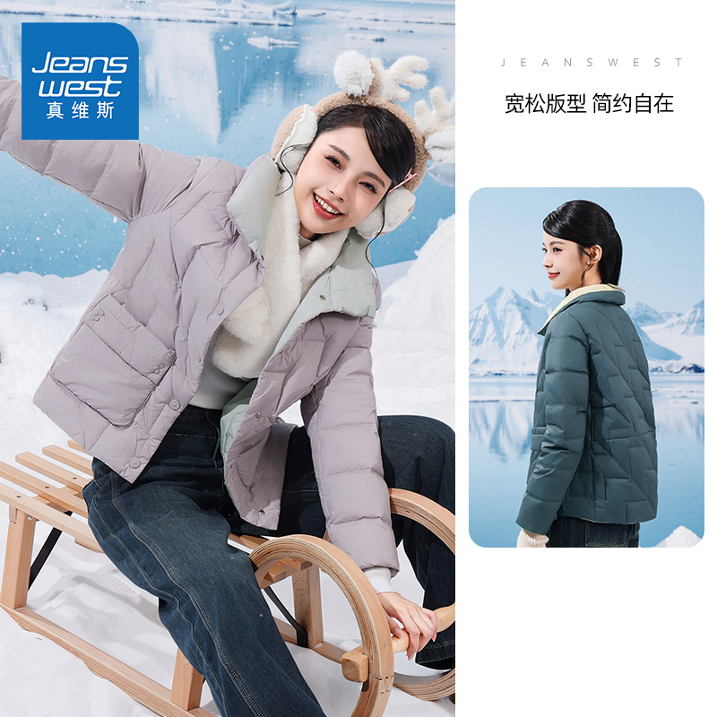 GC真维斯2025新款冬季宽松厚款潮流小个子立领外套羽绒服女显瘦