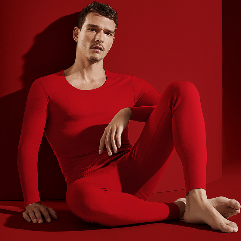 金利来本命年男装秋冬保暖内衣套装男士女红色秋衣秋裤加绒加厚
