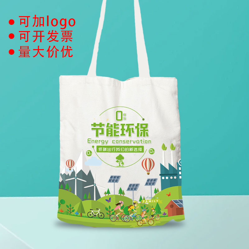 绿色爱护环境环保袋低碳出行垃圾分类公益宣传定制帆布单肩手提包