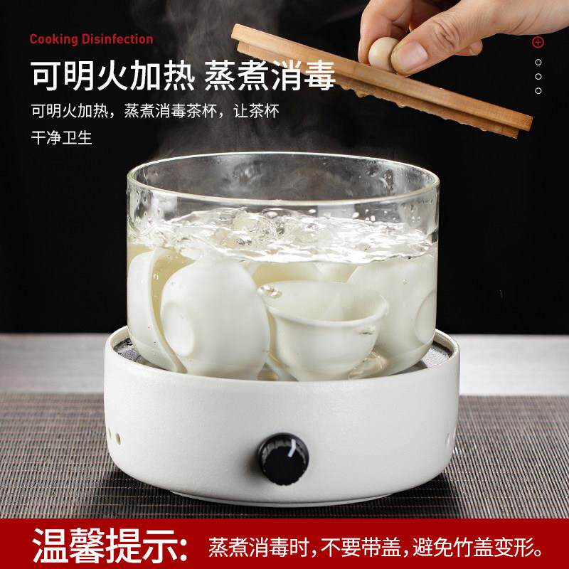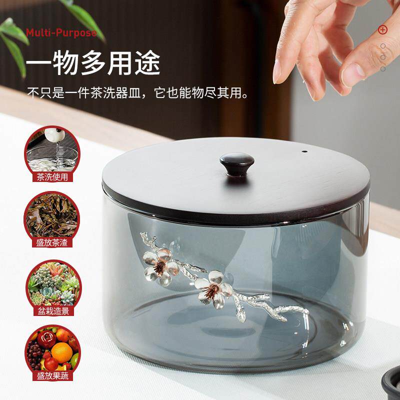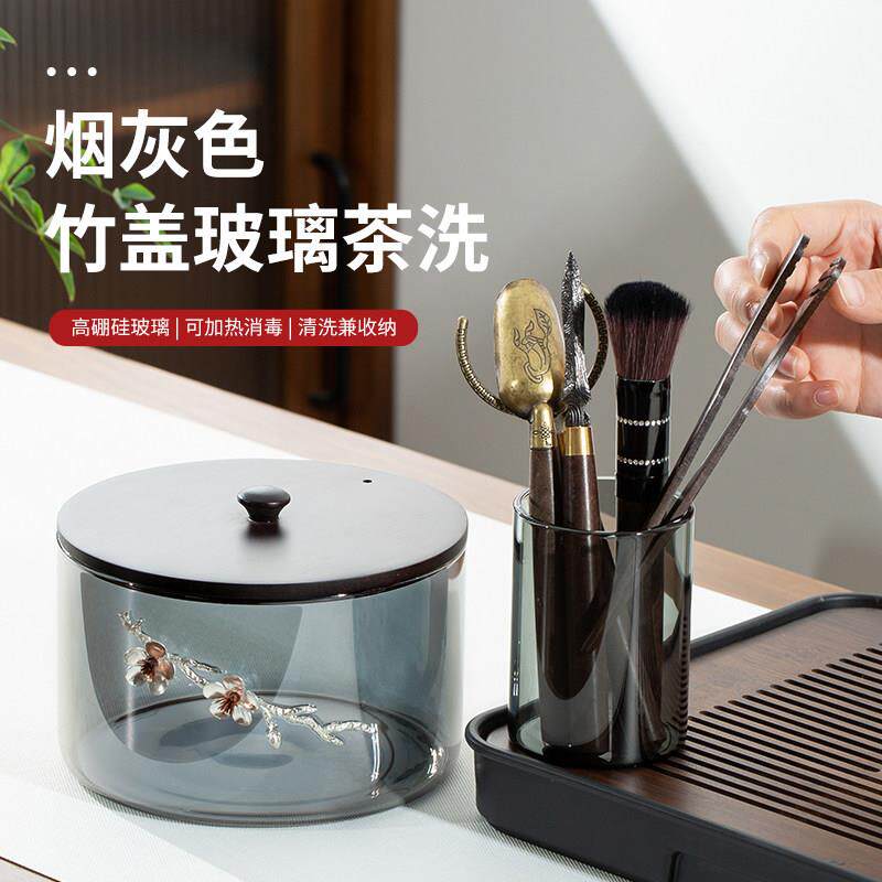 玻璃茶洗家用耐高温带盖子洗茶碗大号水盂茶具配件加热消毒锅洗杯