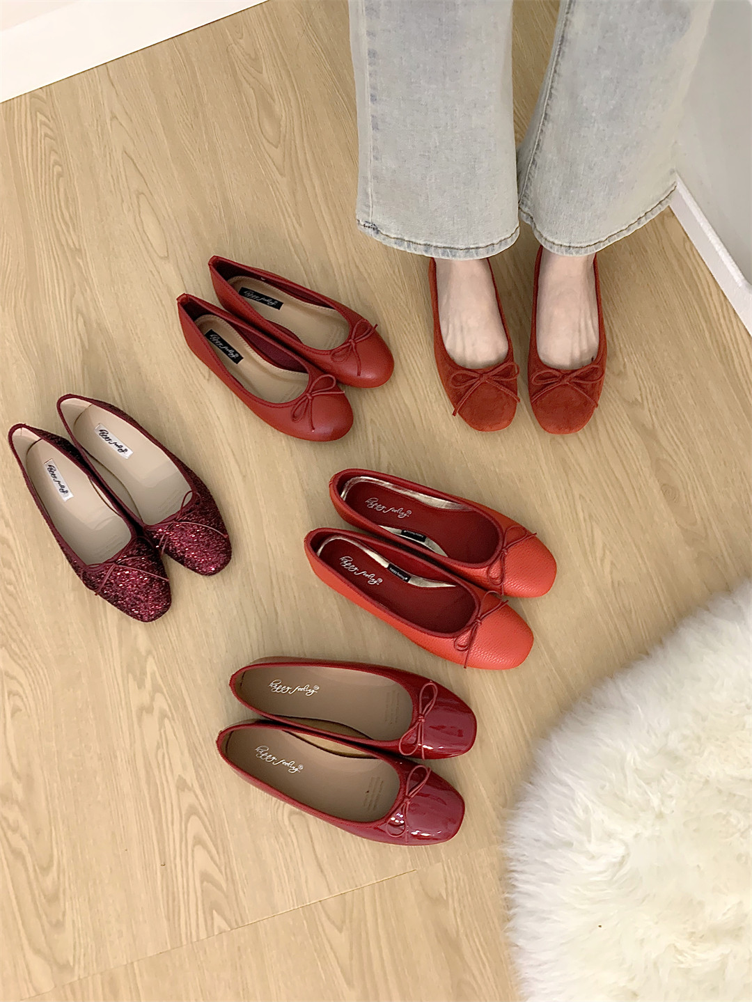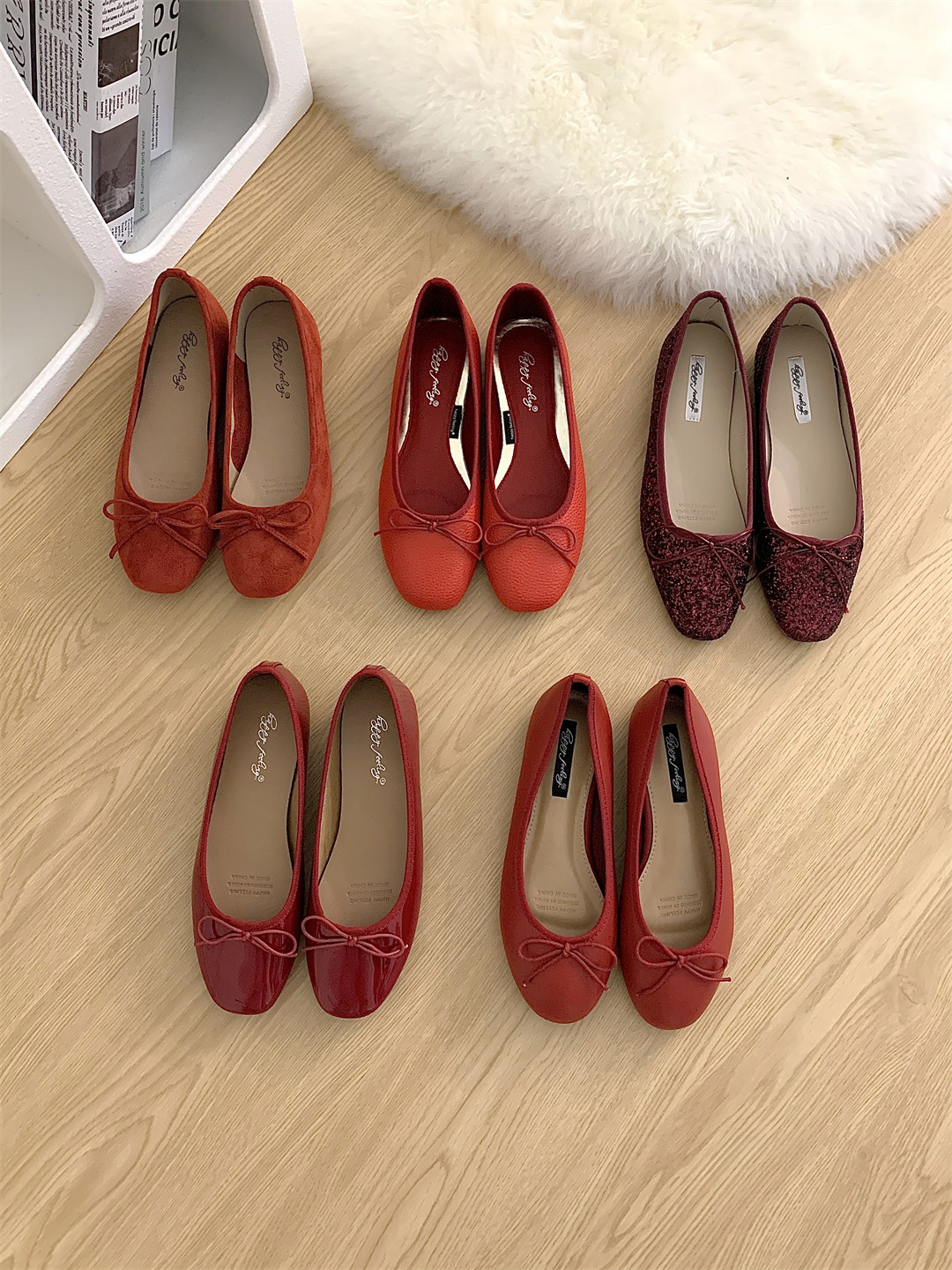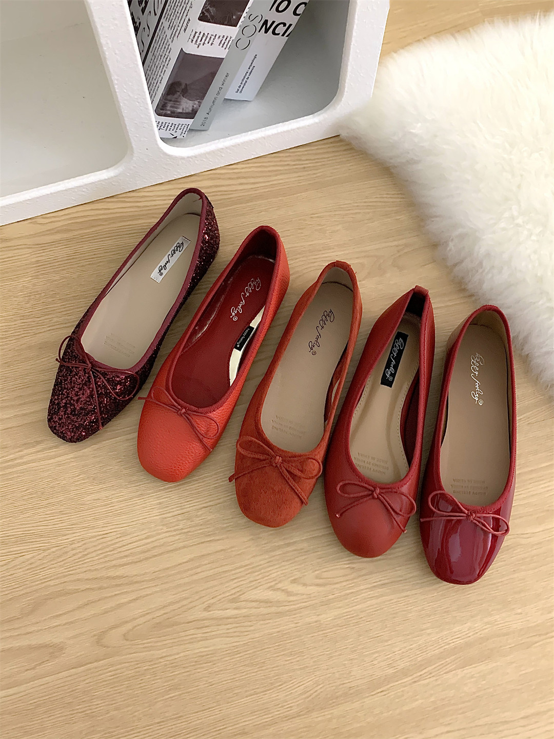 小红鞋女秋韩版ins蝴蝶结