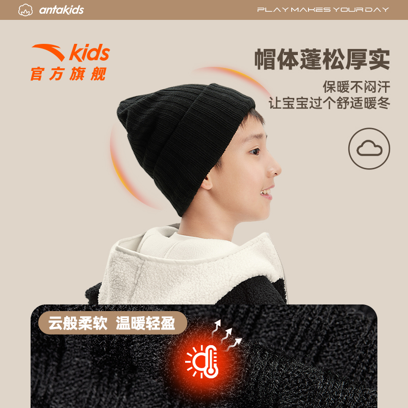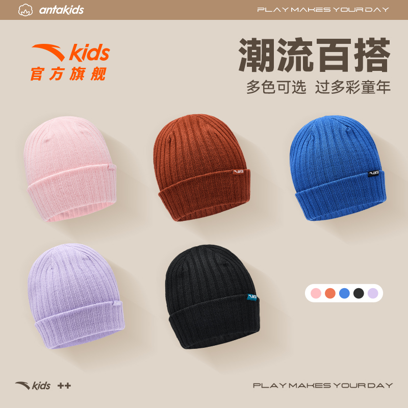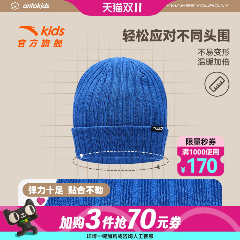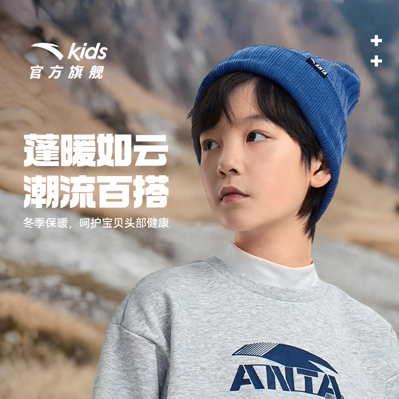 【3件65折】安踏儿童帽子男童宝宝针织帽毛线帽秋冬新款保暖亲肤