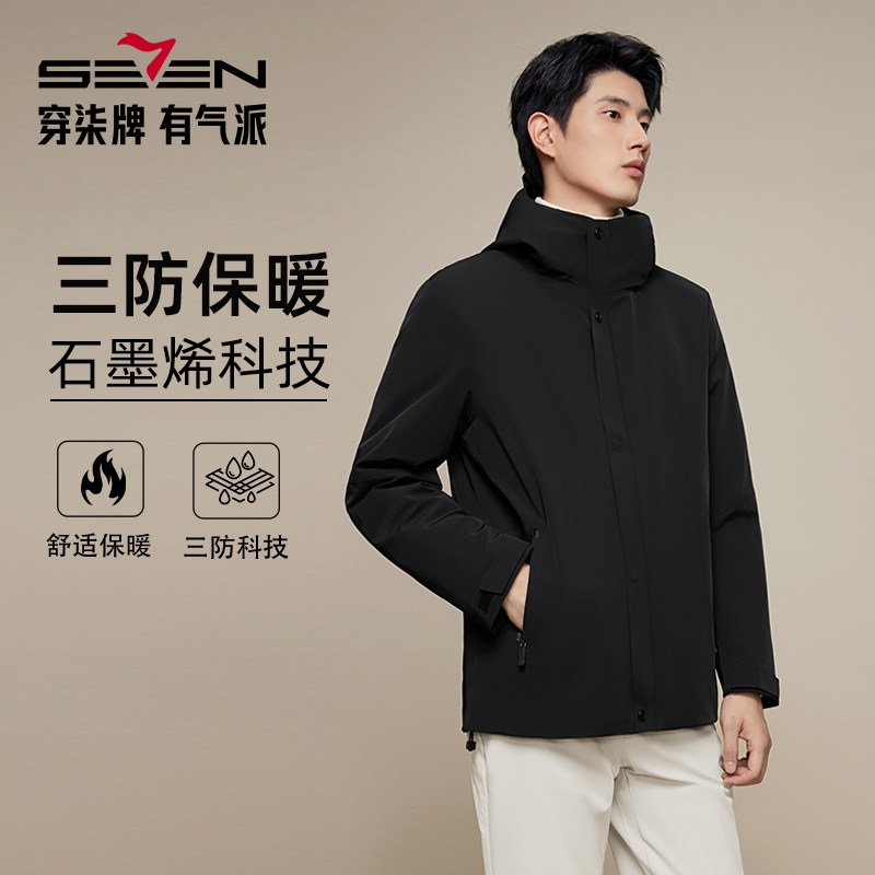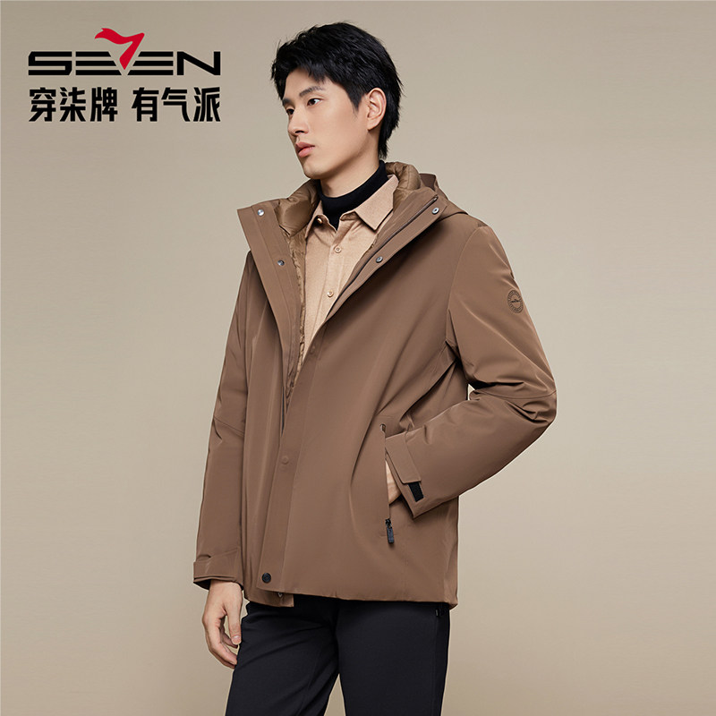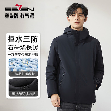 【拒水鸭绒】柒牌男士羽绒服一衣三穿可脱卸内胆户外防泼水外套