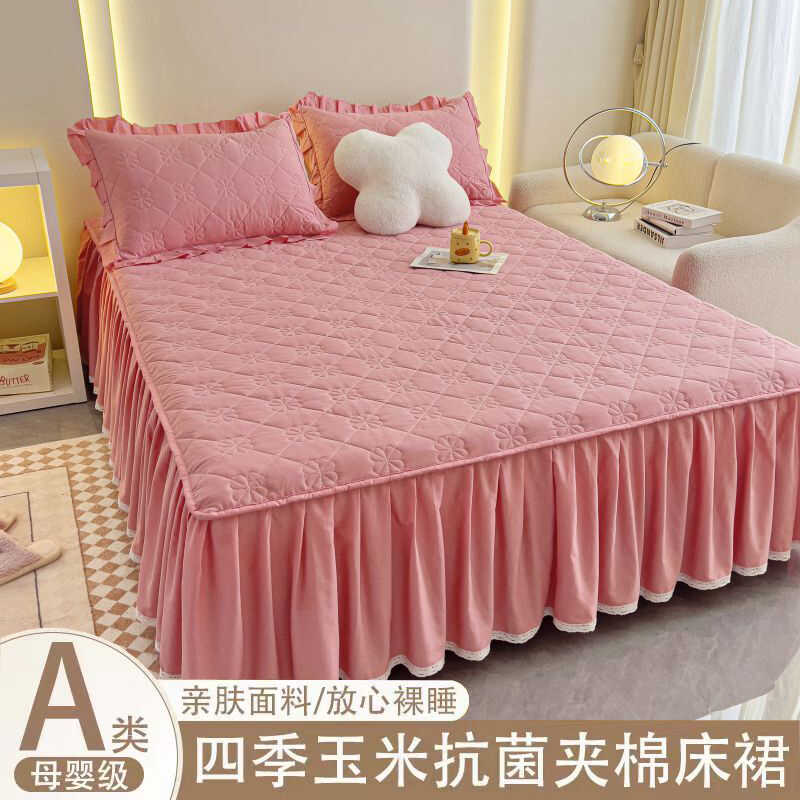新款夹棉床裙床罩单件1.5/1.8m三件套花边床群防滑床单保护套亲肤