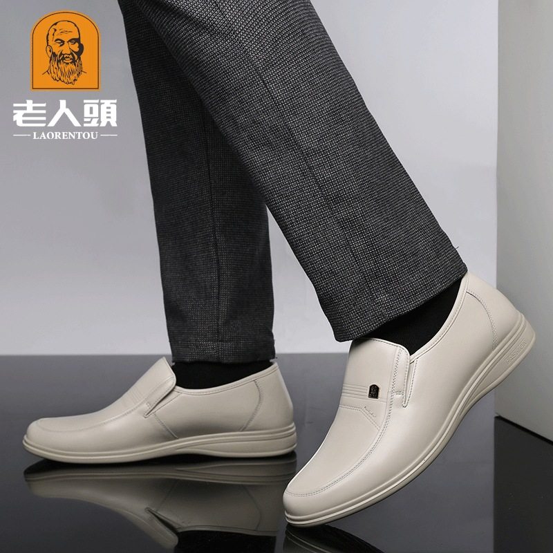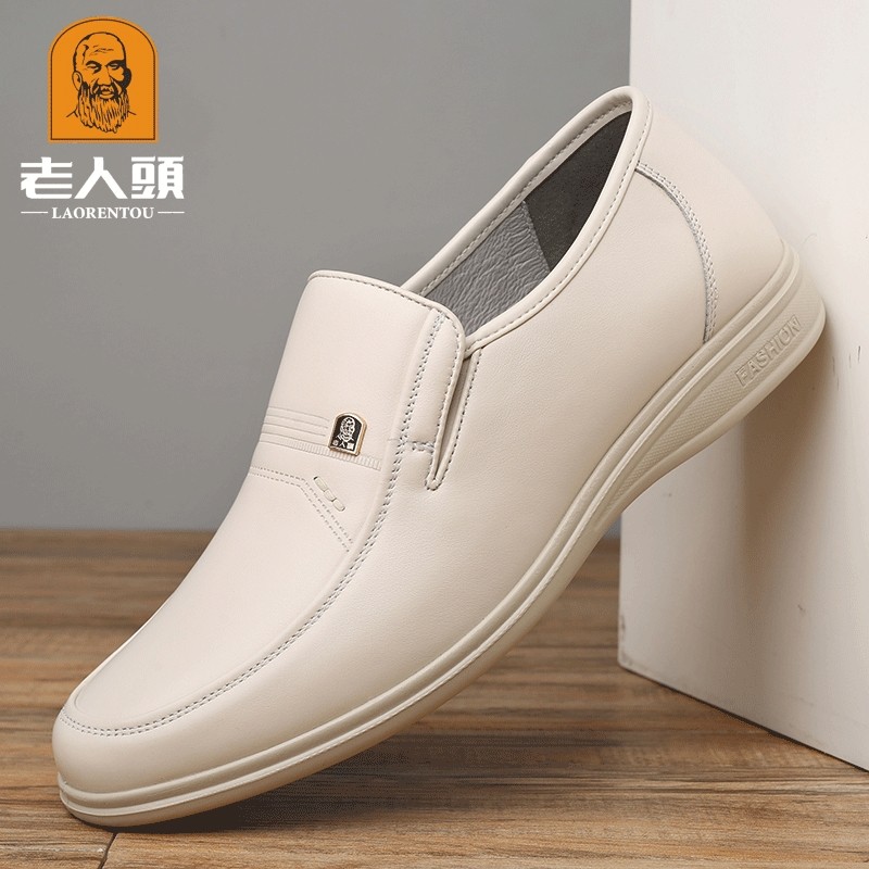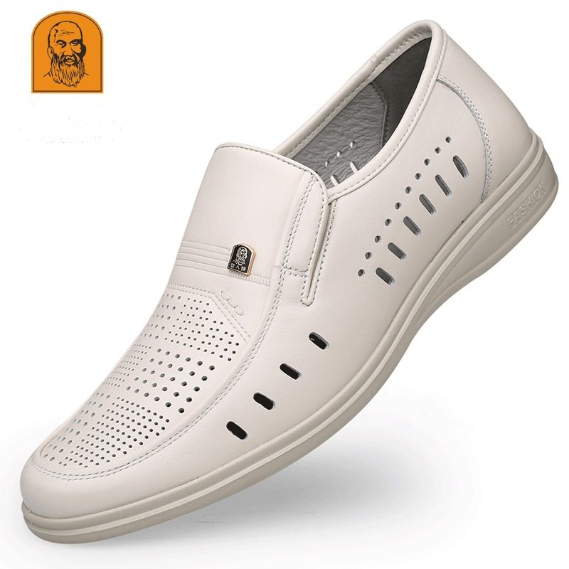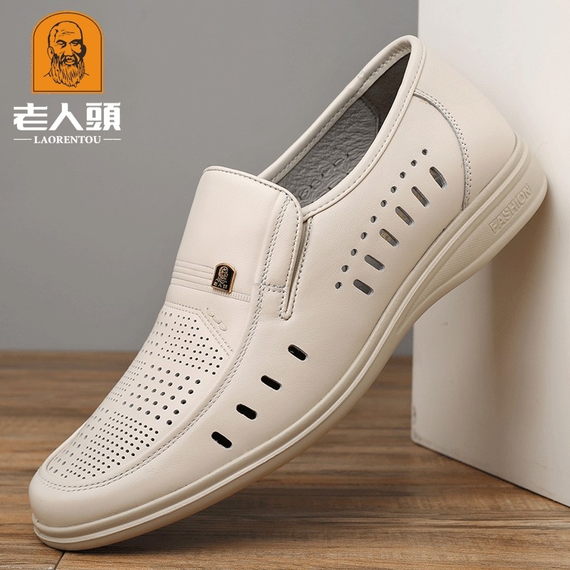 奥莱甄选老人头男鞋白皮鞋真皮商务休闲皮鞋男白色镂空透气凉鞋爸