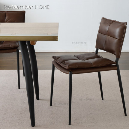 原创北欧中古复古美式铁艺油蜡皮软包意式靠背餐椅轻奢家用皮质椅