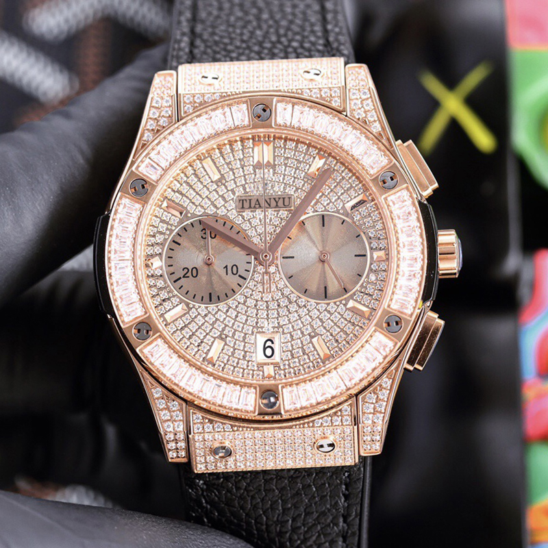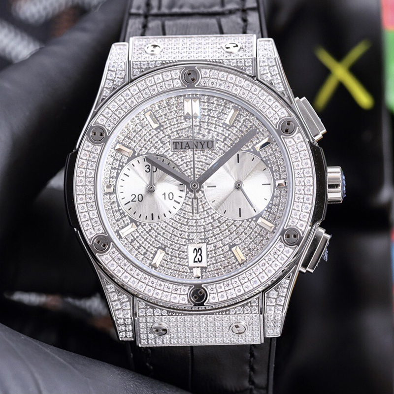 轻奢满天星手表男个性满钻大表盘时尚百搭日历计时多功能石英男表
