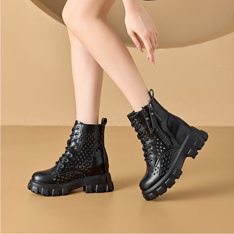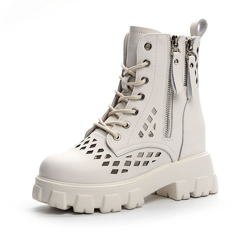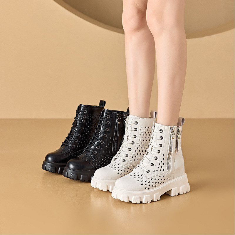 马丁靴女厚底真皮夏季薄款透气凉靴内增高2025年新款网格镂空靴子