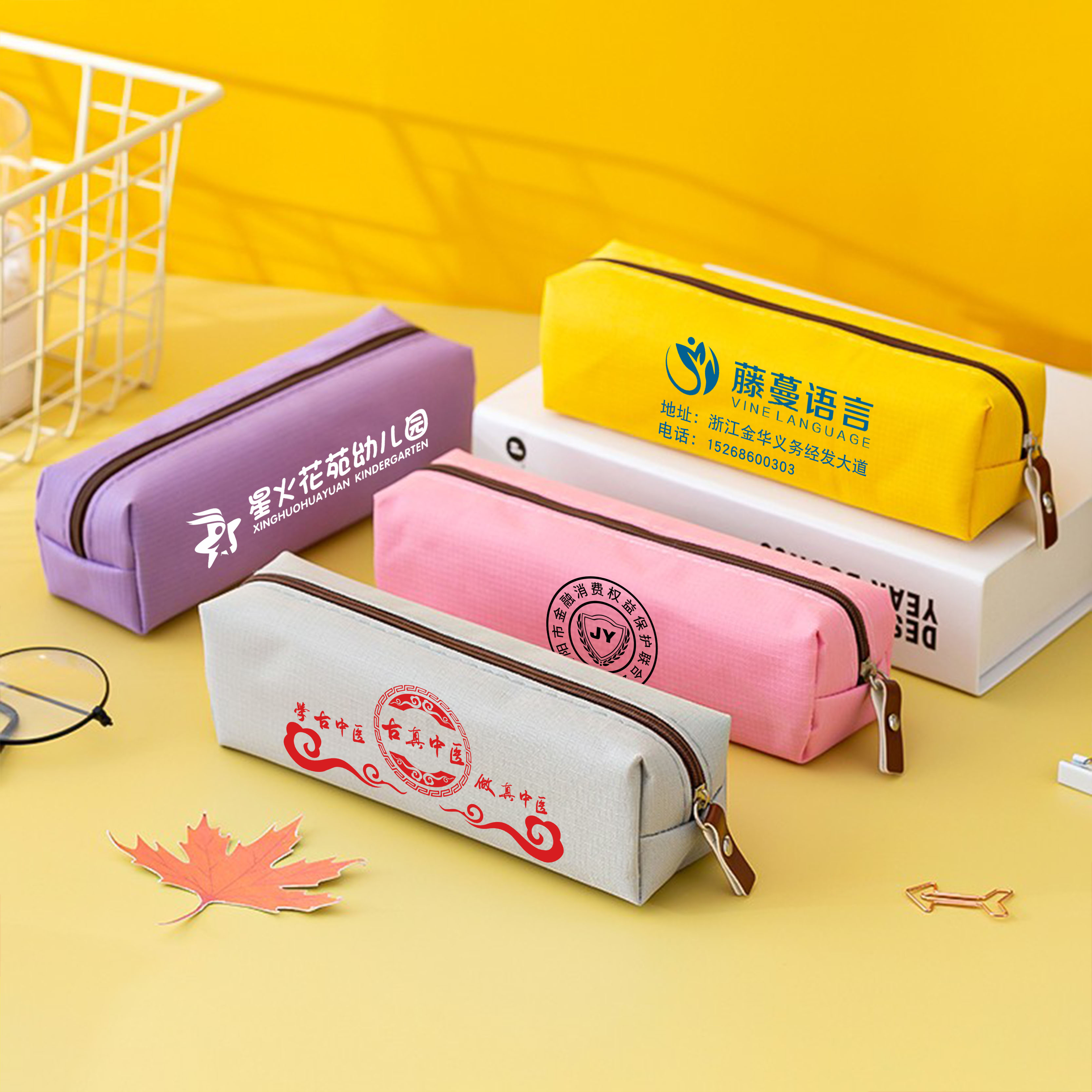 笔袋定制logo黄色纯色空白来图印刷广告小学生六一儿童节礼品奖品