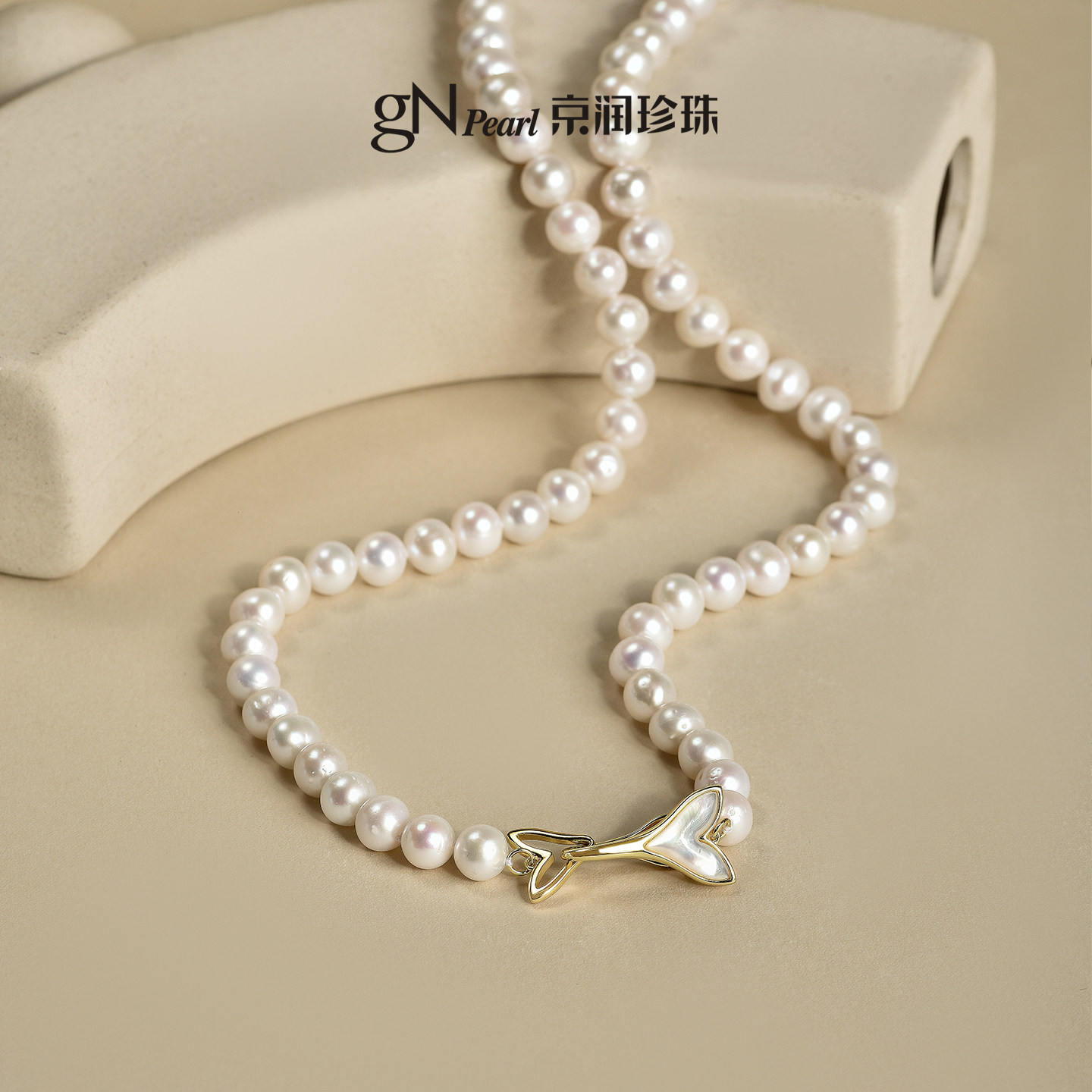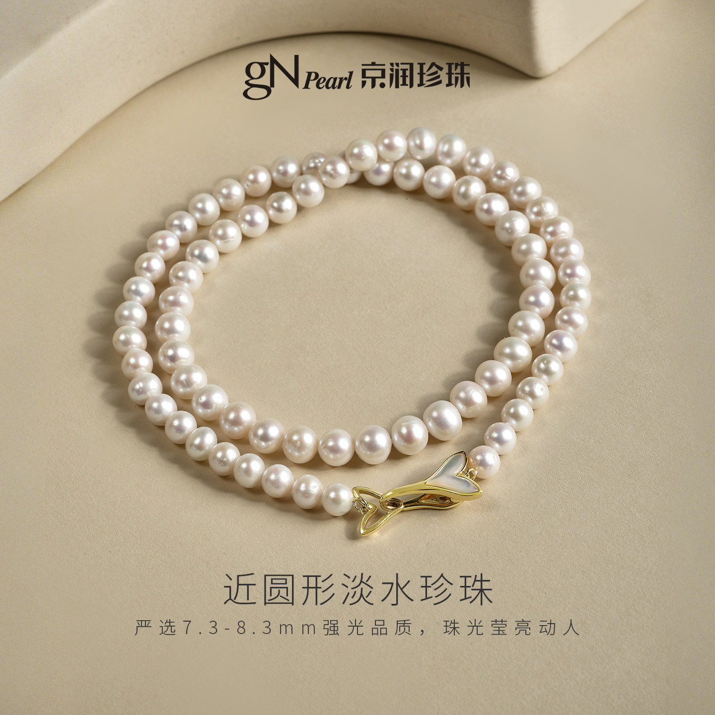 京润珍珠鲸尾扣淡水珍珠全珠项链