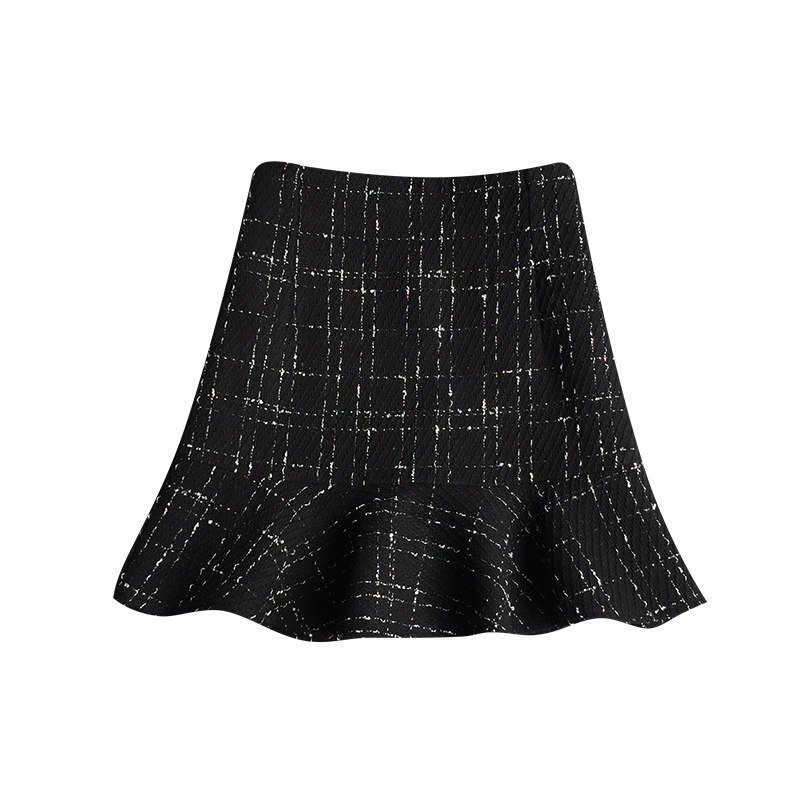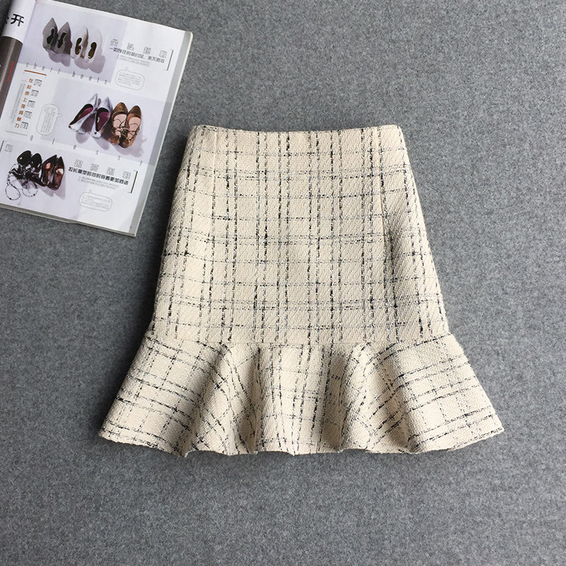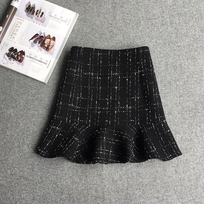 秋冬小个子高腰显瘦荷叶边鱼尾裙子修身A字半身裙女格子短裙小众