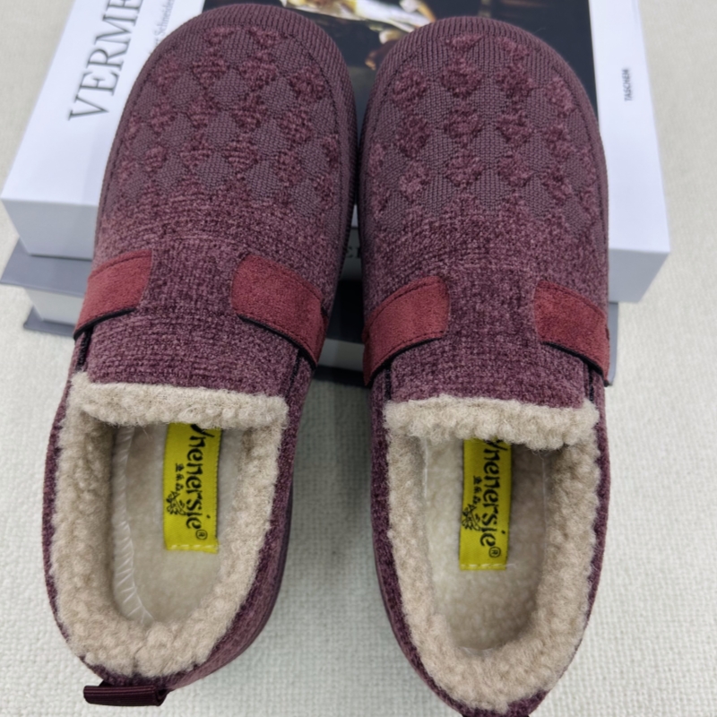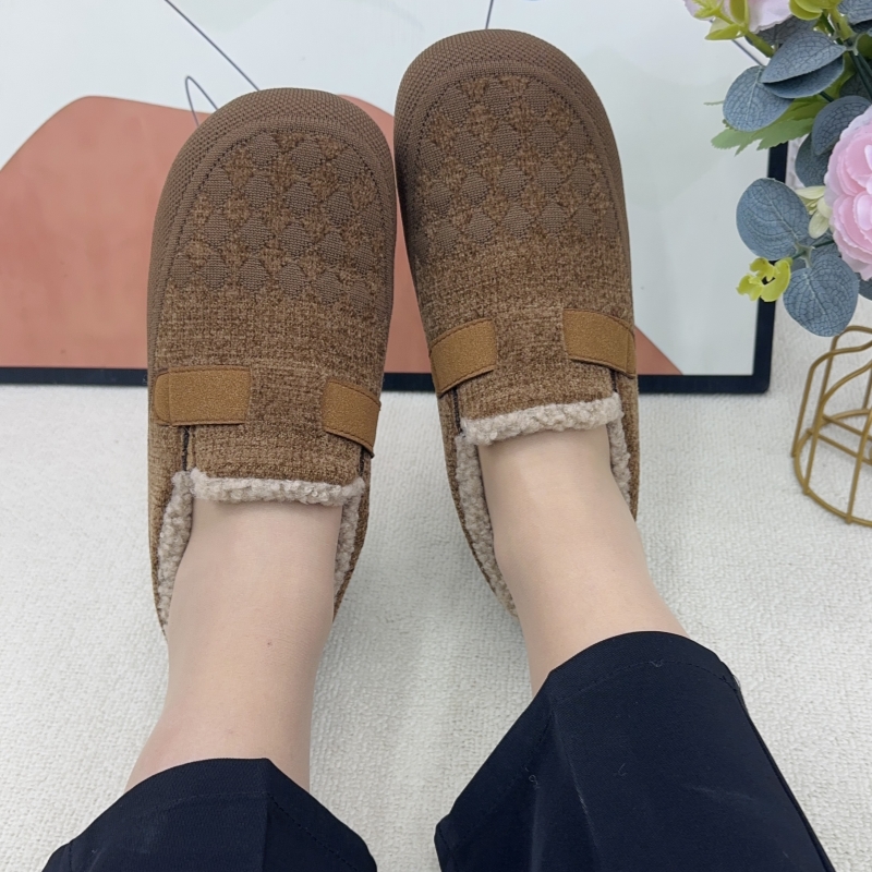 冬季加绒老北京布鞋女棉鞋一脚蹬保暖妈妈鞋圆头平底防滑中老年鞋