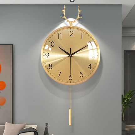 现代黄铜鹿头挂钟家用客厅装饰表挂墙壁高档钟静音挂表个性石英钟