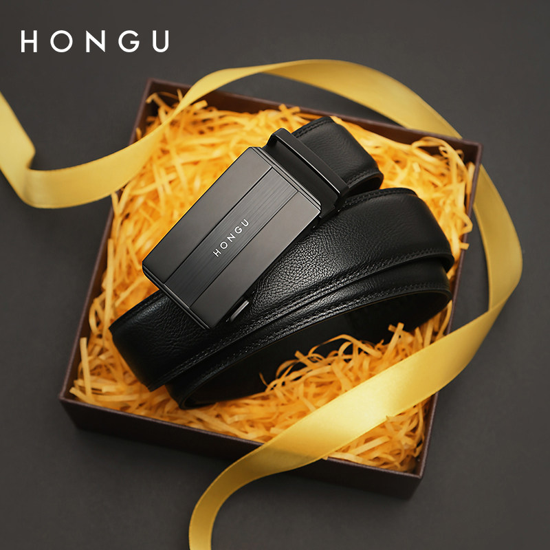 红谷男式皮带真皮青年商务自动扣腰带头层牛皮潮流裤带送男友礼物
