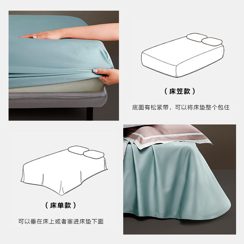 罗莱家纺100s全棉贡缎四件套棉纯棉被套高端床上用品套件高级