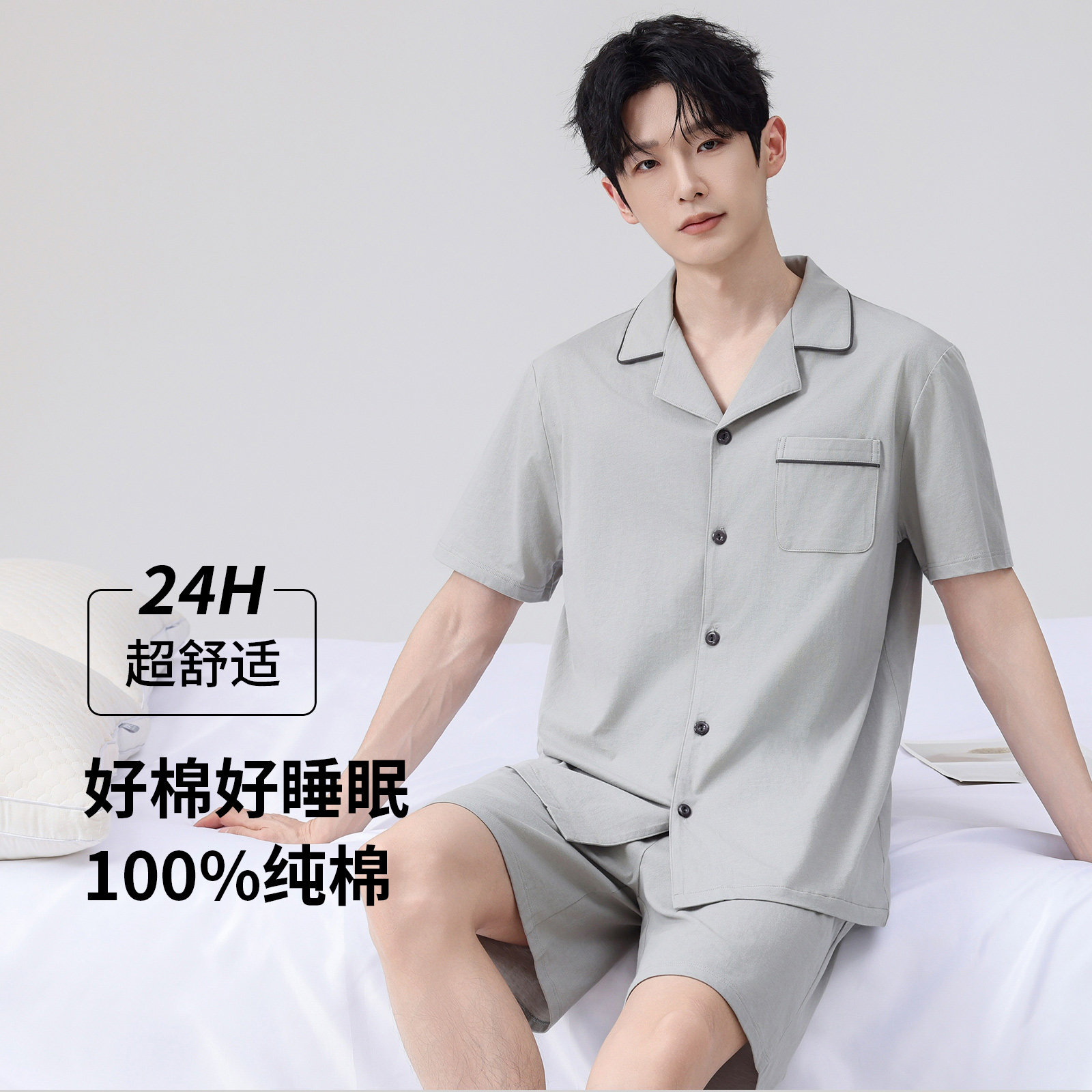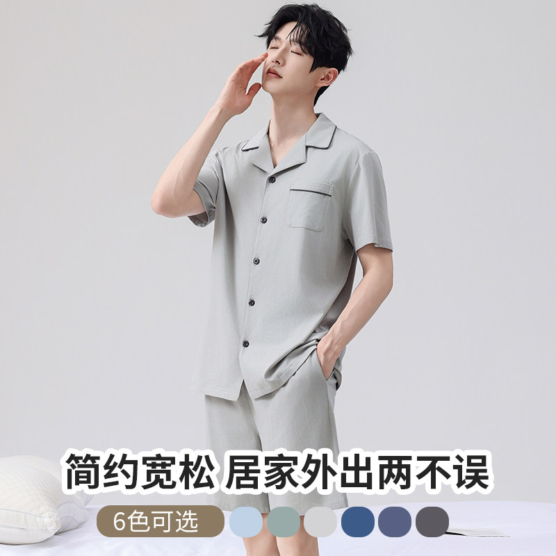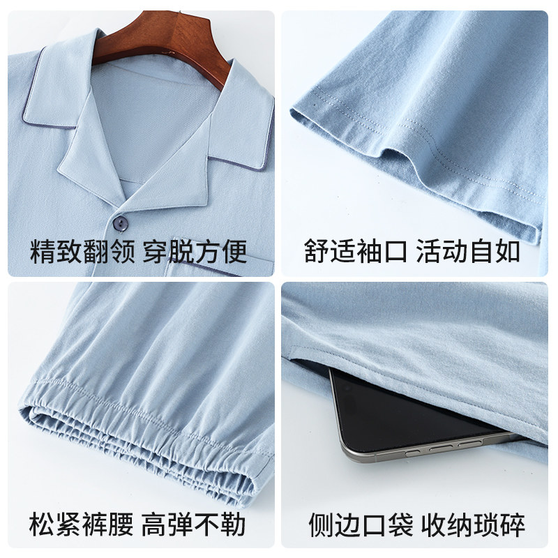 雅鹿男士纯棉睡衣2026新款春夏天薄款全棉开衫短袖短裤家居服套装