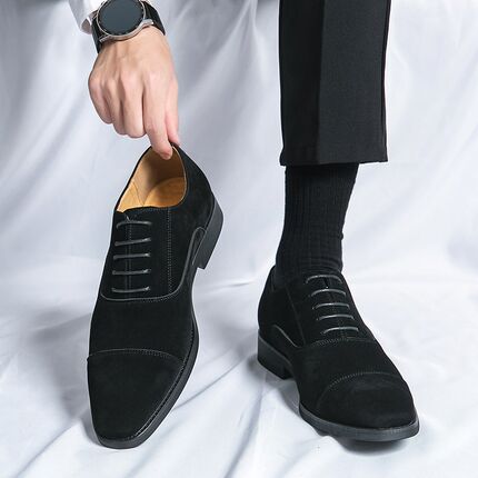 皮鞋男夏季透气商务正装磨砂三接头牛津鞋英伦尖头男士增高休闲鞋