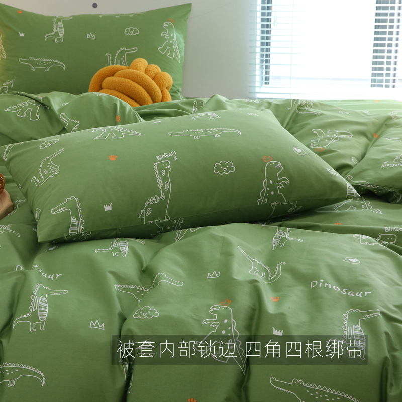 萌趣恐龙 儿童卡通线条纯棉床单被套三四件套100全棉加密斜纹床品